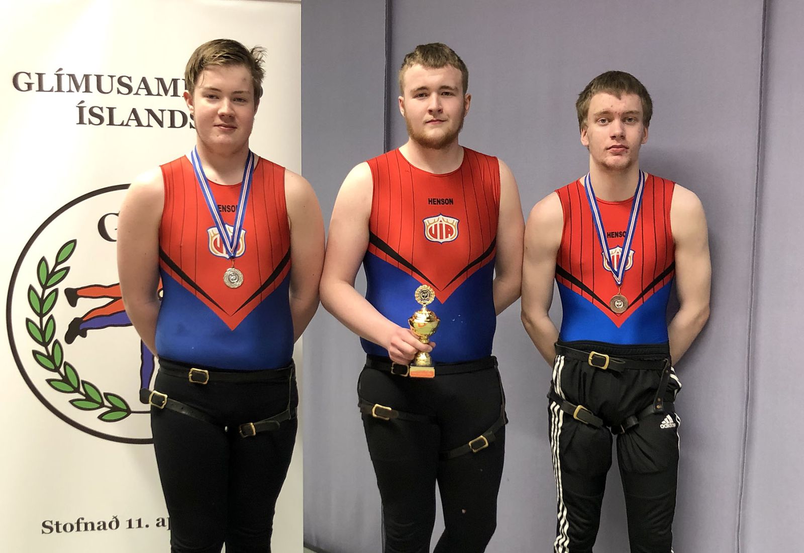 Verðlaunahafar í unglingaflokki, frá vinstri: Þórður Páll, Hákon og Ægir. Mynd: Glímusamband Íslands
