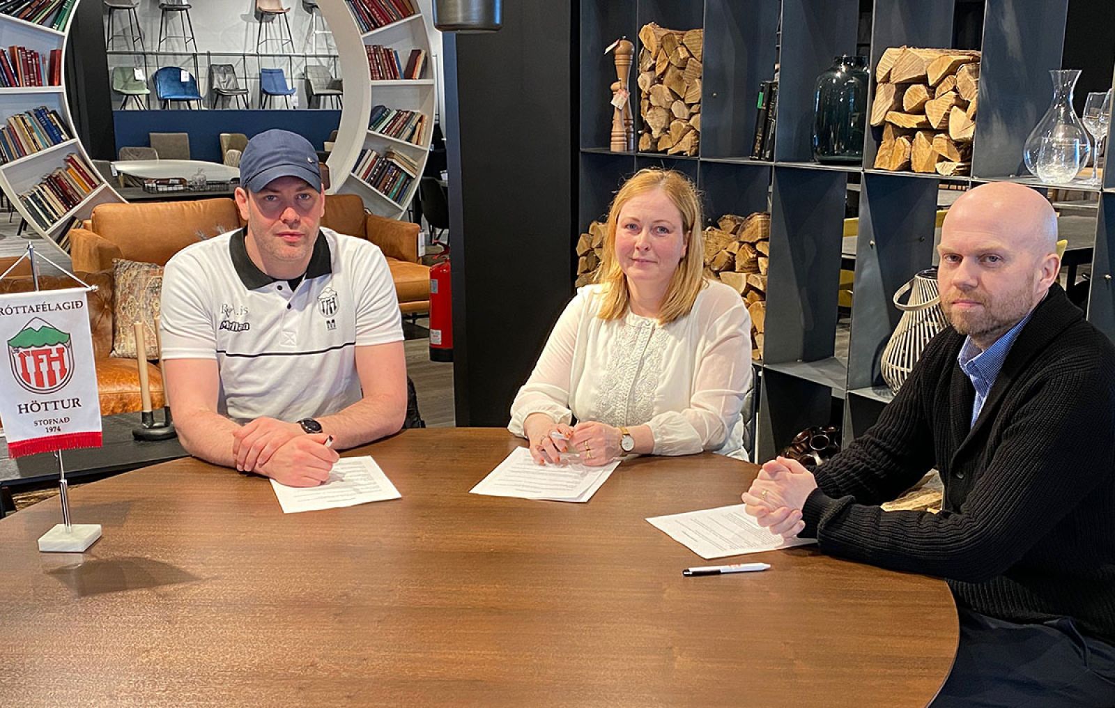 Viðar Örn, Ásthildur Jónasdóttir formaður körfuknattleiksdeildar Hattar og Einar Árni við undirritunina í Húsgagnahöllinni í dag. Mynd: Körfuknattleiksdeild Hattar