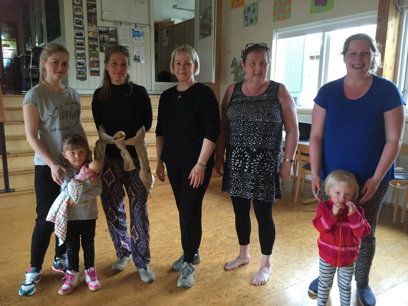 Til leiks mættu fimm fullorðnar borgfirskar konur og tvær yngri . „Við tókum klukkutíma þar sem ég kenndi þeim grunnsporin.“