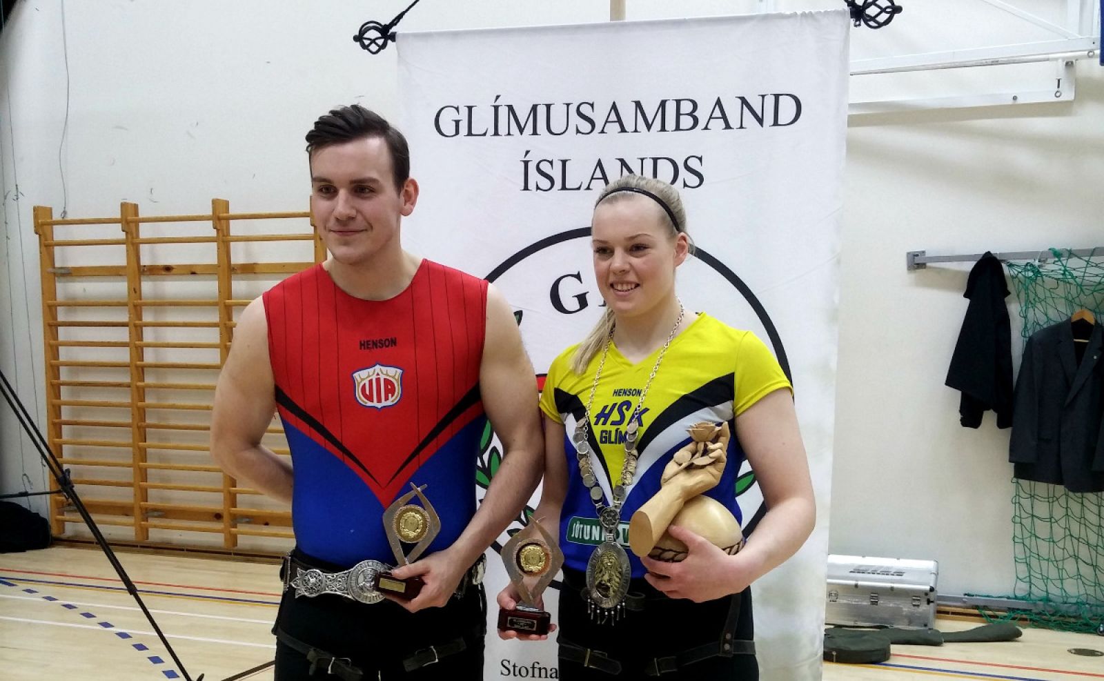 Ekki nóg með að Ásmundur hafi landað Grettisbeltinu annað árið í röð, heldur er Marín Laufey Davíðsdóttir, sem sigraði keppnina um Freyjumenið, unnusta Ásmundar. Marín Laufey keppir fyrir HSK og er þetta í fimmta skipti sem hún sigrar Íslandsglímuna og hlýtur sæmdarheitið Glímudrottning Íslands.