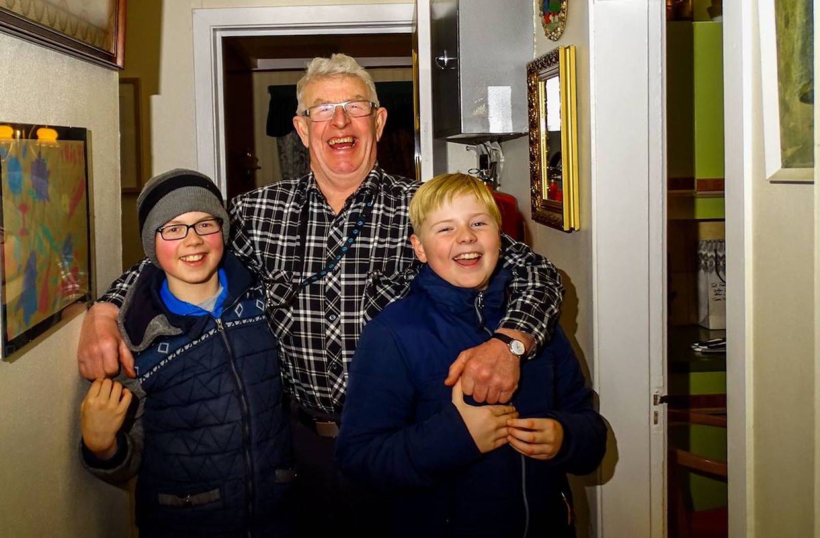 Mynd: Sigfús með barnabörnum sínum Hafsteini Smára Guðjónssyni og Margréti Sigfúsdóttur.