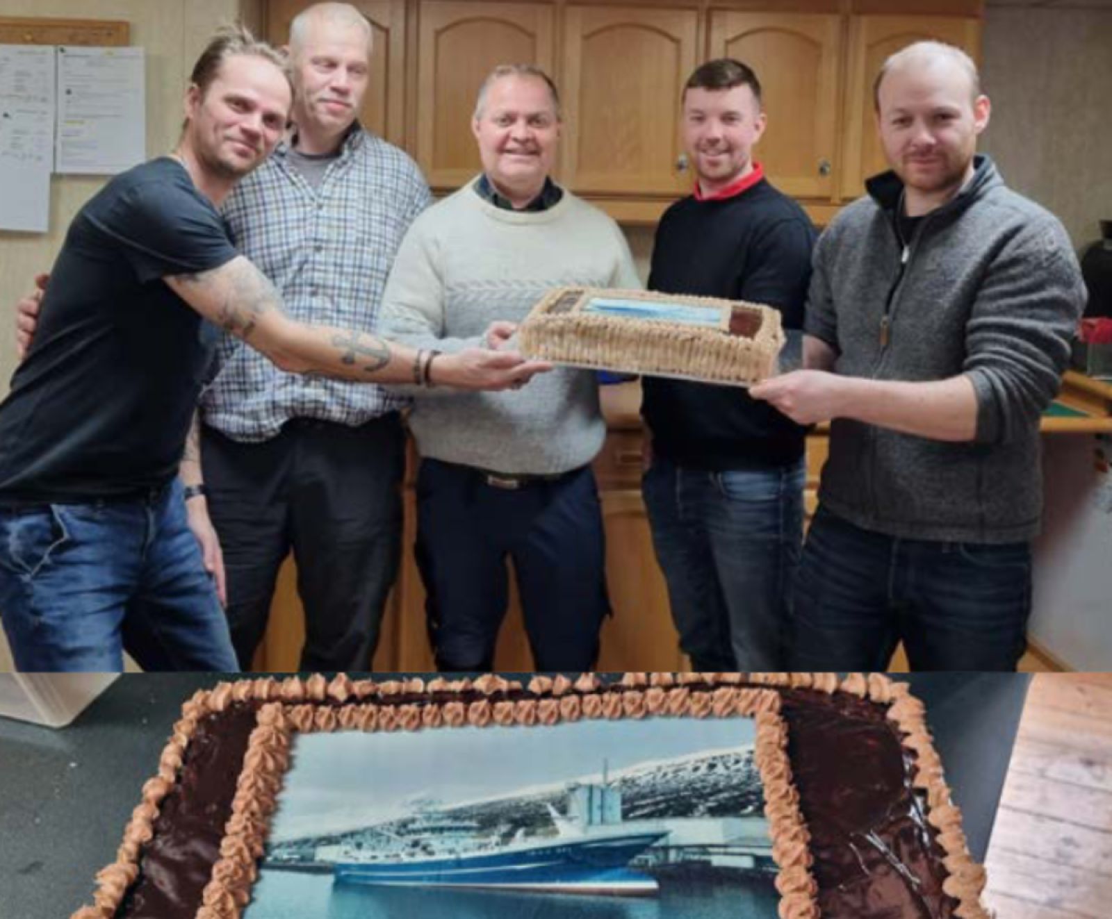 Fátt amalegt við að koma til hafnar í erlendri höfn og fá að gjöf heljarinnar tertu sem þakklætisvott. Mynd Óðinn Magnason.