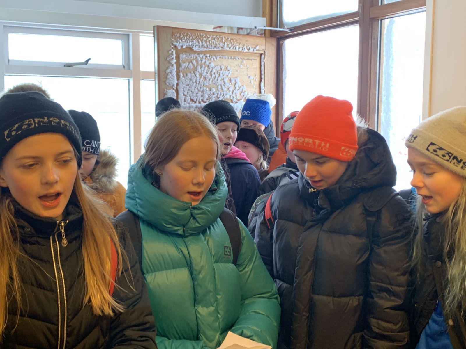 Nemendur í 7. bekk Nesskóla syngja úr sér lungun. Mynd: BKG