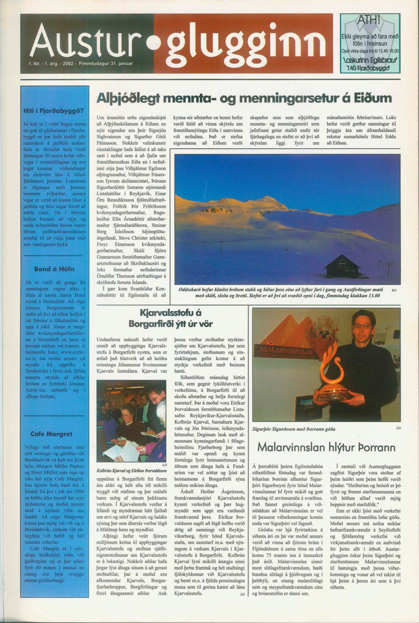 Á forsíðu blaðsins var sagt frá áformum nýrra eigenda Eiða um alþjóðlegt mennta- og menningarsetur þar sem og stofnun Kjarvalsstofu.