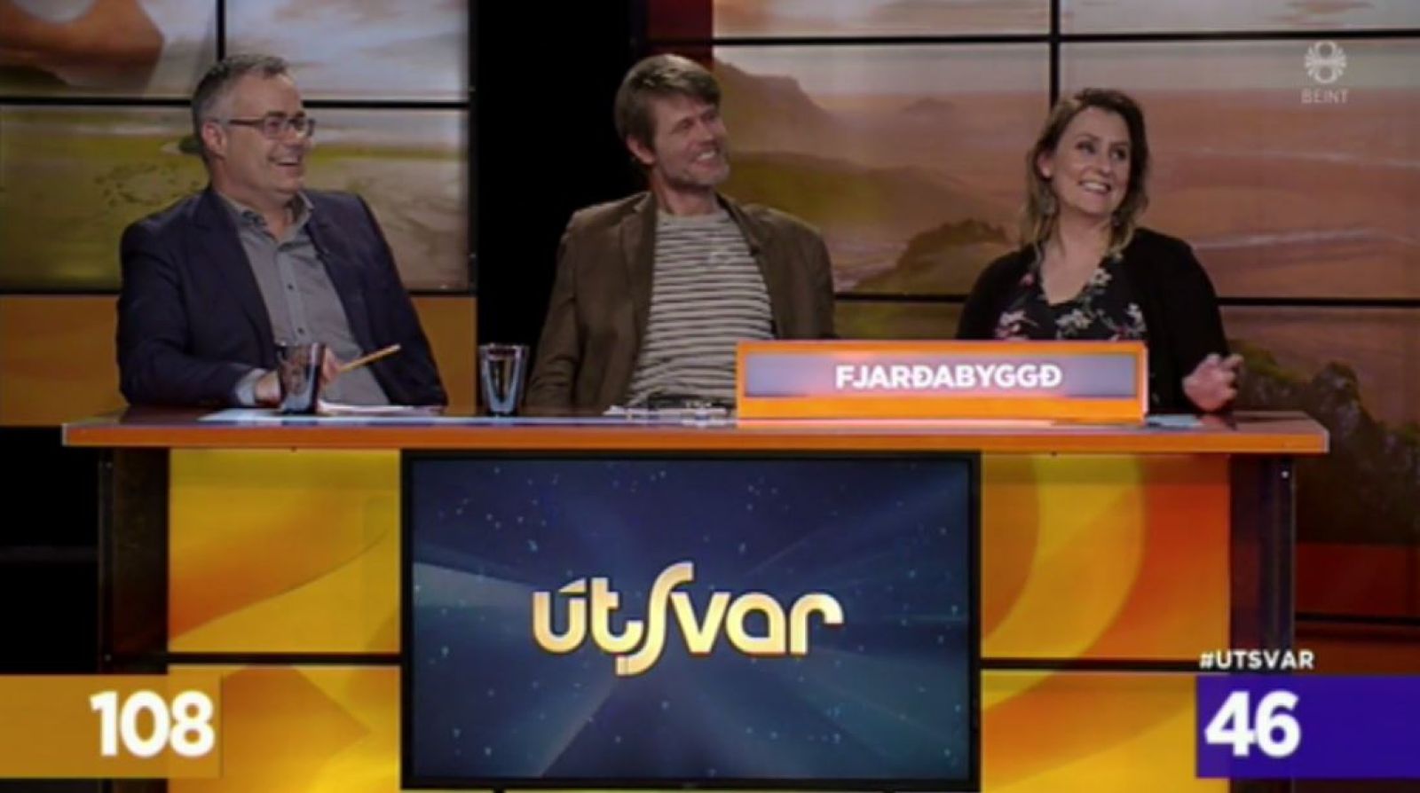 Lið Fjarðabyggðar er komið í undanúrslit spurningakeppninnar Útsvars eftir að hafa burstað Ölfus 108-46 á föstudagskvöld. Áhorfendur virtust hrífast sérstaklega af miðjumanni Fjarðabyggðar.