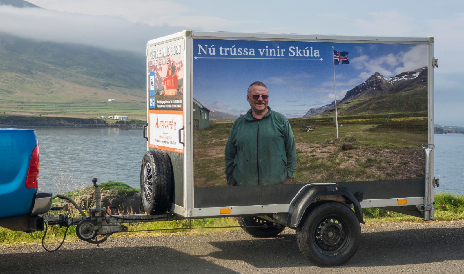 Leiðsögumaðurinn og lífskúnstnerinn Skúli Sveinsson frá Borgarfirði eystri lést snögglega og langt fyrir aldur fram síðastliðinn vetur. Bróðir hans, Karl, ákvað að halda minningu Skúla á lofti með því að taka að sér þær ferðir sem bókaðar höfðu verið á hann í sumar á sérmerktum vagni með yfirskriftinni „Nú trússa vinir Skúla“.