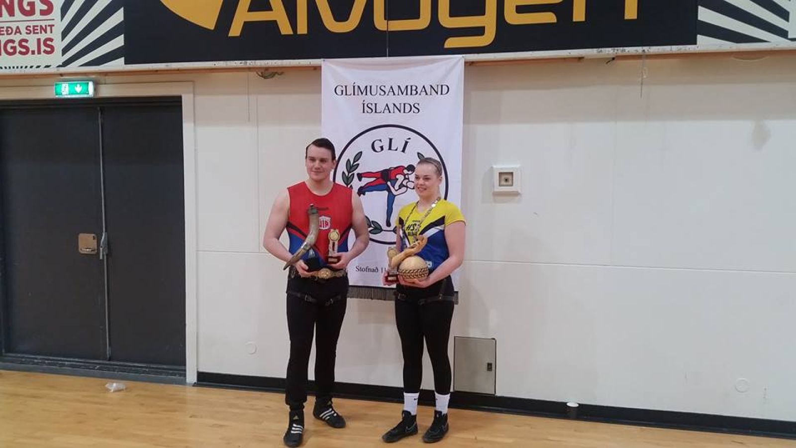 Ásmundur Hálfdán og kærasta hans Laufey Davíðsdóttir í HSK voru kosin „glímufólk árins 2017“ af Glímusambandi Íslands í byrjun janúar.