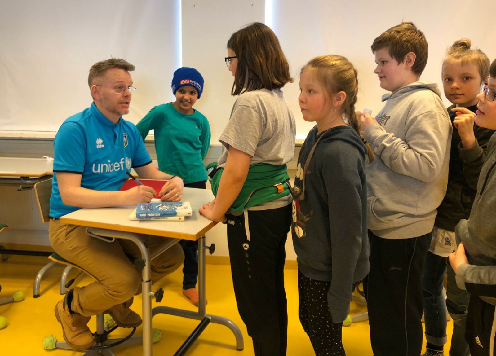 „Þetta er áróðursherferð, sem miðar að því að fá krakka til að fá enn meiri áhuga á bókum og lestri. Það eru allir að tala um það að íslensk börn lesi ekki nóg, en við það að fara í svona heimsóknir hef ég það nú á tilfinningunni að það lesi bara heilan helling og þetta sé ekki eins mikið vandamál og fólk vill vera láta af. Það eru nánast allir krakkar sem ég hitti búin að lesa eitthvað, en hættan er sú að þau fari frá bókinni þegar þau koma upp í unglingadeild.“