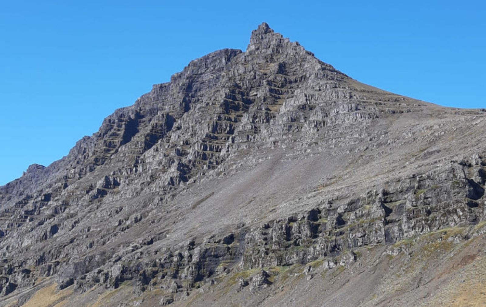 Naphornsklettarnir, milli Berufjarðar og Breiðdalsvíkur, þar sem drengirnir þrír bjuggu um sig í klettaskúta frelsinu fegnir á sínum tíma. Það snérist fljótlega upp i martröð. Skútinn sem drengirnir dvöldu í segir Ásgeir hafa fallið niður að stórum hluta og sé því óaðgengilegur að mestu. Mynd Ásgeir Hvítaskáld.