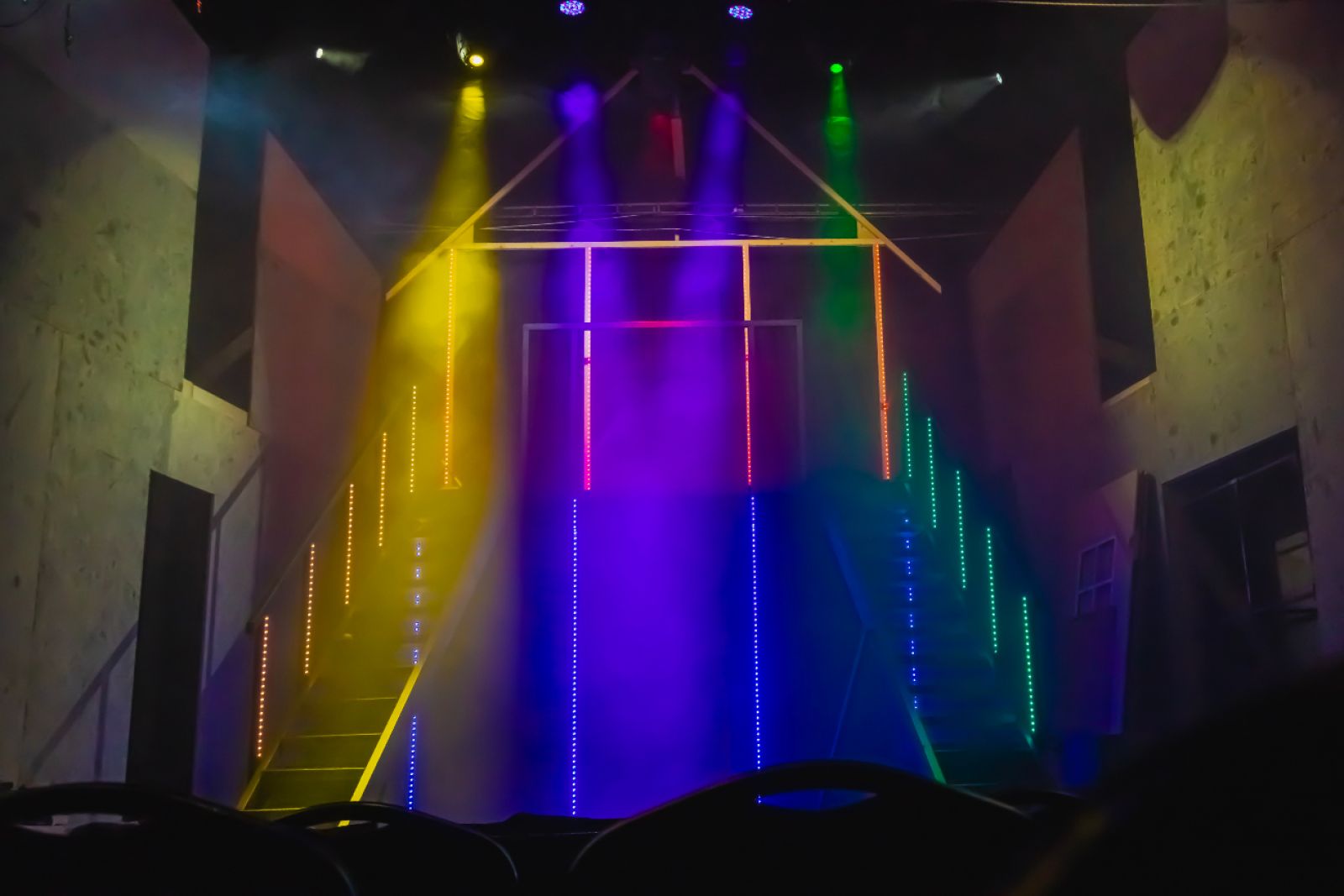 Spennan í aðstandendum hefur magnast mikið síðustu sólarhringa að sögn Margrétar Perlu en fyrir utan að halda utan um allt frá A til Ö leikur dóttir hennar stóra rullu í leikritinu. Alls eru 14 leikarar sem taka þátt fyrir utan hina 30 sem sjá um allt hitt kringum slíka sýningu en meðfylgjandi aðsenda mynd sýnir leikmyndina og ljósadýrðina nú þegar aðeins tveir dagar eru til frumsýningar. Alls eru sjö sýningar skipulagðar á Heathers.