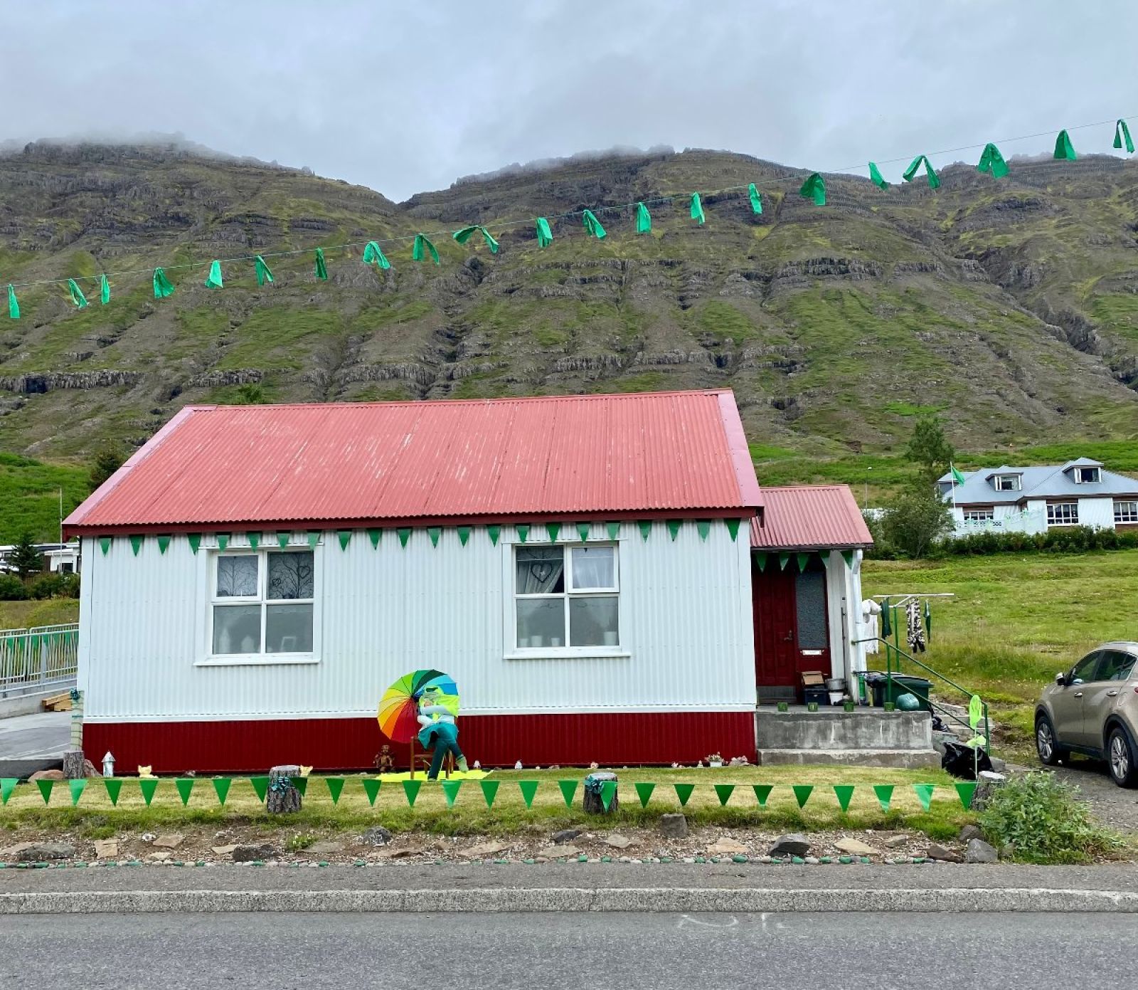 Bæjarbúar margir hafa tekið vel í að litamerkja hverfi Neskaupstaðar í tilefni af Neistaflugi um helgina. Mynd María Bóel