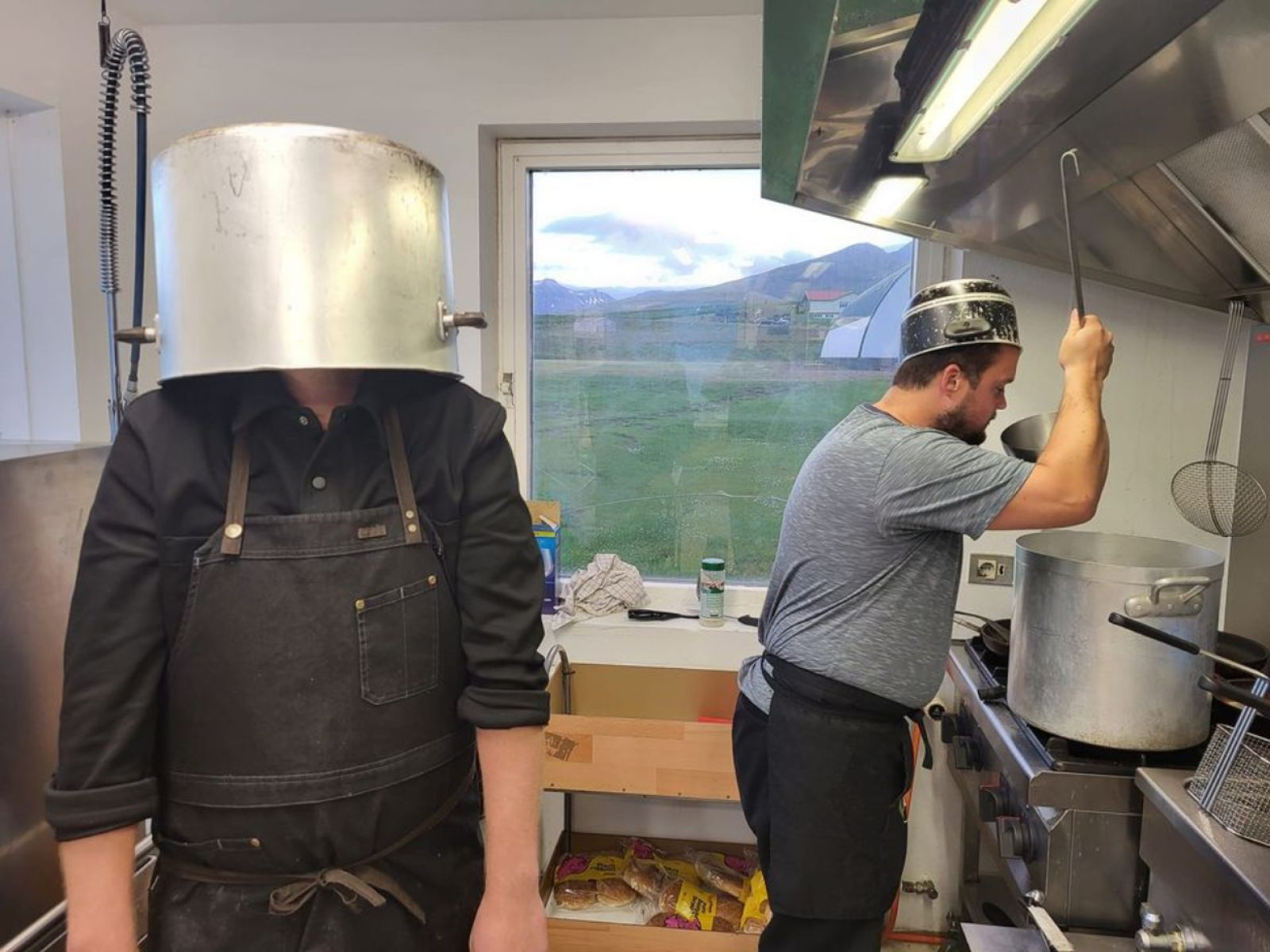 Kokkarnir í Fjarðarborg láta vitaskuld ekki sitt eftir liggja í samtímalist eða gjörningi. Mynd Já Sæll