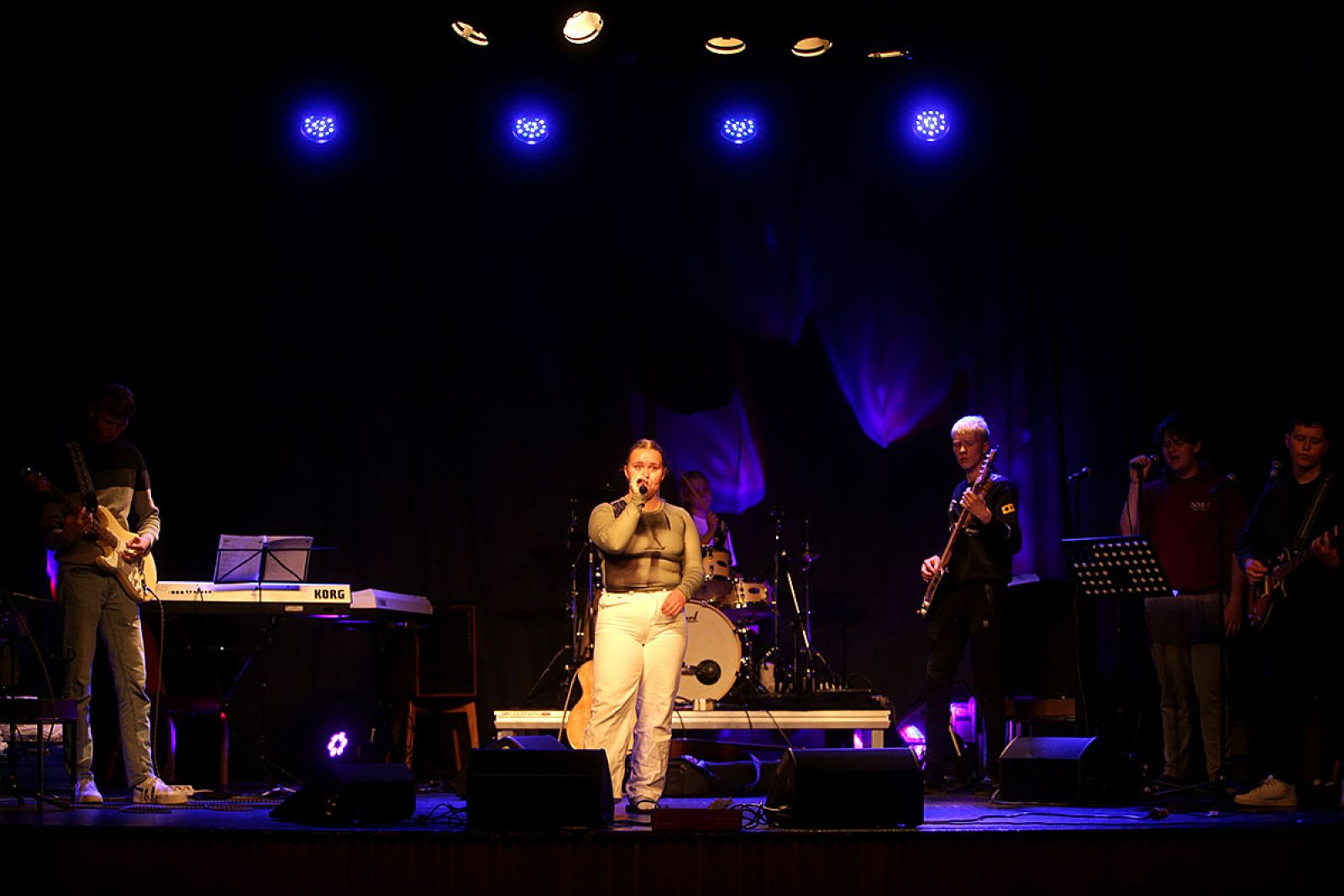 Okkur fannst gaman í fyrra og hópurinn náði vel saman þannig að við ákváðum að halda áfram,“ sagði Dögun Óðinsdóttir, formaður TME í viðtali við Austurgluggann í tengslum við tónleikana sem haldnir voru með íslenskum rokklögum. Meðfylgjandi myndir voru teknar við það tilefni.
