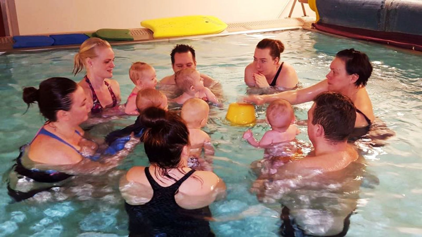 Ungbarnasund er hreyfiþjálfun í vatni þar sem farið er í margs konar hreyfileiki og sungið.