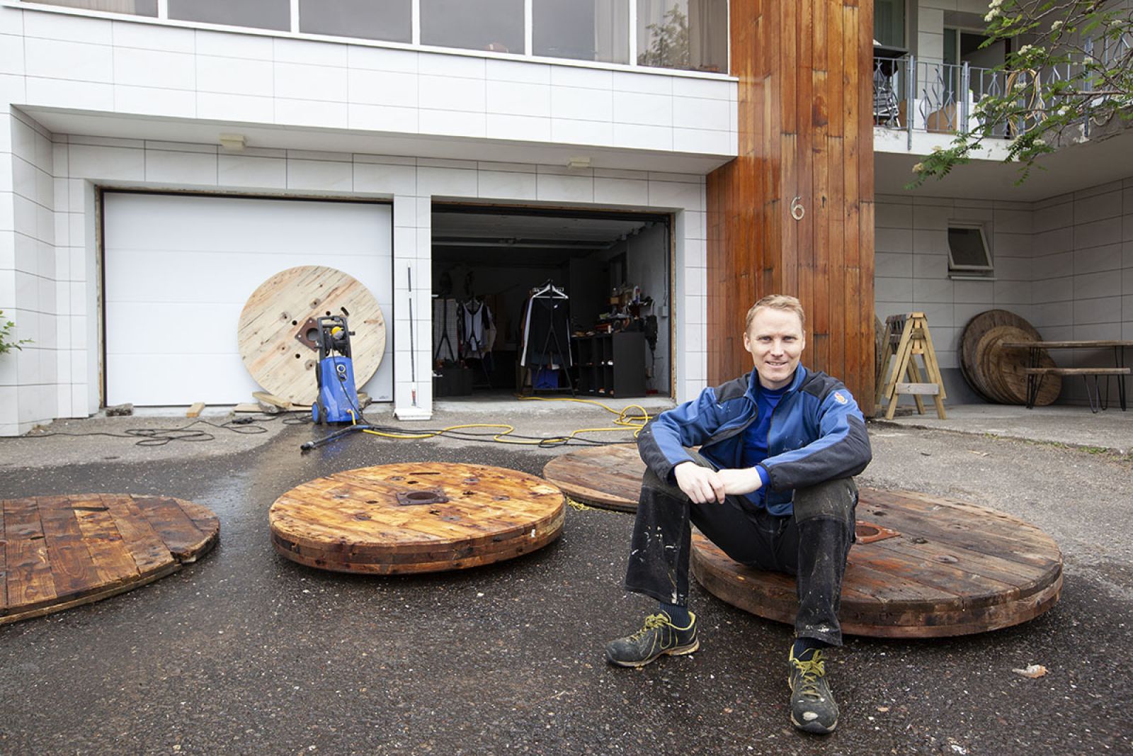 „Ég segi að við séum að búa til borð úr rusli. Við notum kefli sem hafa þjónað sínum tilgangi til að flytja rafmagnskapla og stálvíra,“ segir Matthías í viðtali í nýjasta tölublaði Austurgluggans.