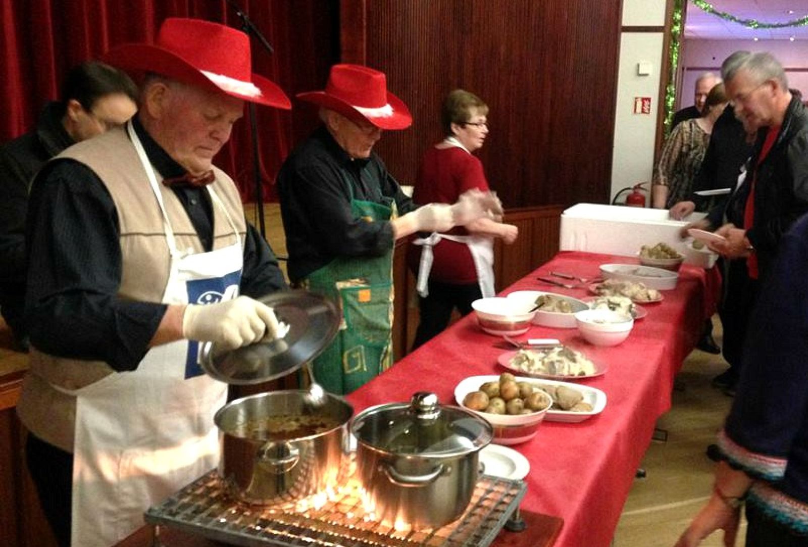 Eldri borgararnir standa sjálfir vaktina við framreiðsluna og skarta við það skemmtilegum höttum. „Hattarnir blikka ennþá, en við keyptum þessa hatta fyrir nokkrum árum og höfum verið með þá við þetta tilefni síðan,“ segir Hallgrímur sem hvetur fólk til þess að skrá sig ef það ætlar að mæta á morgun, því það sé betra til þess að hægt sé að áætla matarmagnið.