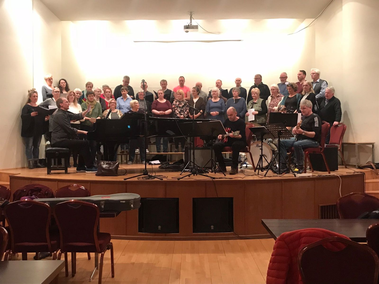 Daníel lofar góðri skemmtun á morgun. „Verkið heitir Fuglakabarett og verk fyrir kór og hljómsveit um farfugla og staðfugla. Þetta er mikil gleði og mikill húmor. Það kennir ýmissra grasa, þetta er í raun og veru hvorki stílað frekar á börn né fullorðna. Þetta er ekkert of langt heldur. Það hafa bara allir gaman. Þarna eru valsar og sömbur, þungarokksballöður, lög í íslenskum fimmundarstíl og allt þar á milli,“ segir Daníel.