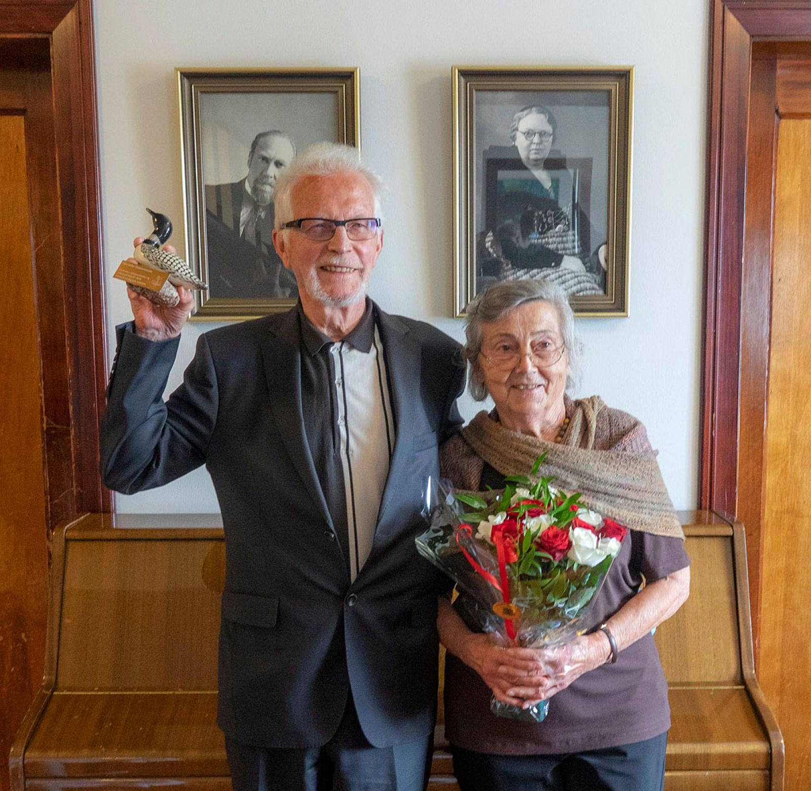 Hjörleifur með viðurkenninguna ásamt konu sinni, Kristínu Guttormsson. Mynd: Andrés Skúlason/NAUST