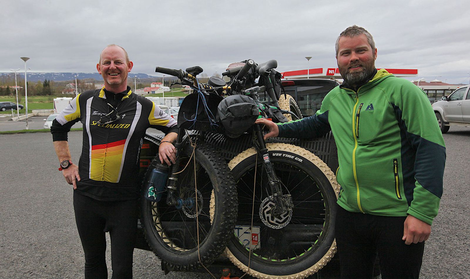 Eiríkur átti hugmyndina að ferðinni þegar hann keypti sér svokallað „fat bike“ fyrir um ári. Hjólin eru á breiðari dekkjum en gengur og gerist og að auki slöngulaus þannig hægt er að stilla loftþrýstingin þannig þau fljóti á snjónum, líkt og fjallajeppar.
