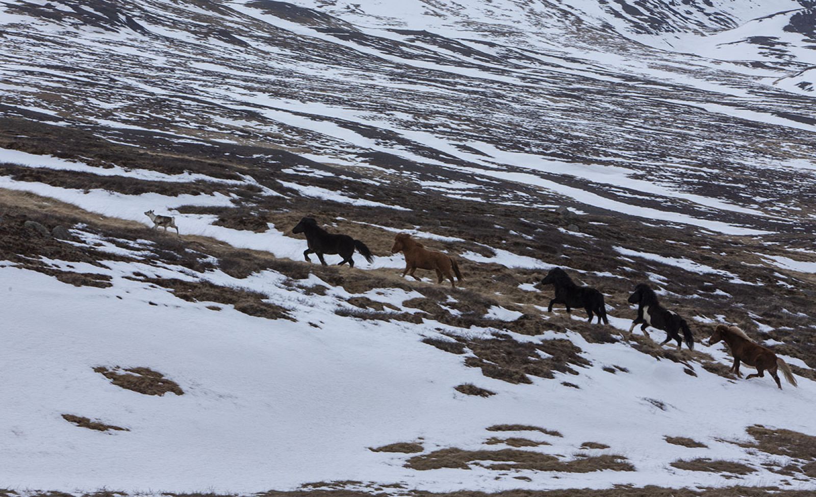 „Það fylgir eftir hestunum, leikur sér með þeim og kúrir sig niður með þeim í vondum veðrum,“ segir Andri Fannar Traustason, sem býr á Þorvaldsstöðum.