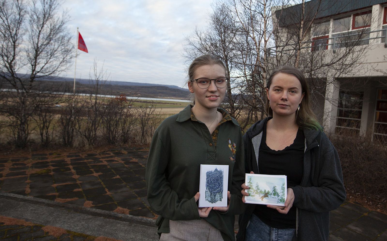 Tveir nemar við Menntaskólann á Egilsstöðum skipta með sér fyrstu verðlaunum í samkeppni um hönnum jólakorta fyrir Hollvinasamtök heilbrigðisþjónustu á Fljótsdalshéraði í ár.