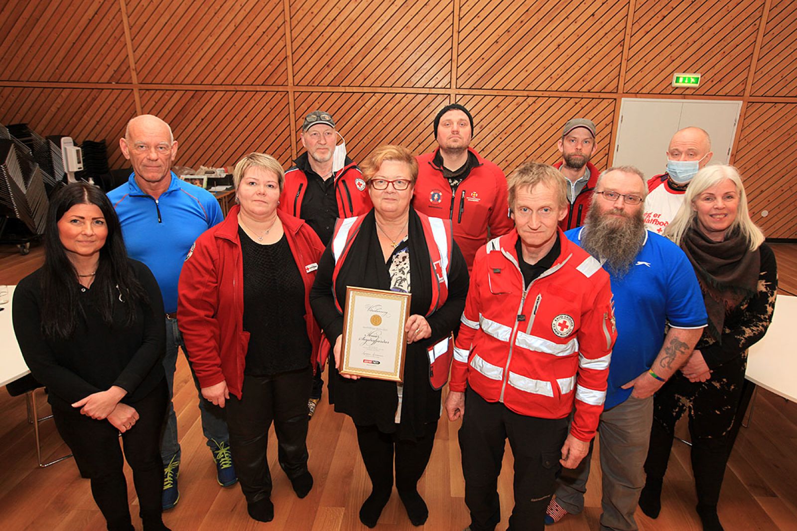 Hann var í hópi björgunarsveitarfólks, sjálfboðaliða Rauða krossins og heimastjórnar Seyðisfjarðar sem tóku við viðurkenningunni í Herðubreið í gærkvöldi. Þar hittast Seyðfirðingar og borða saman á fimmtudagskvöldum.