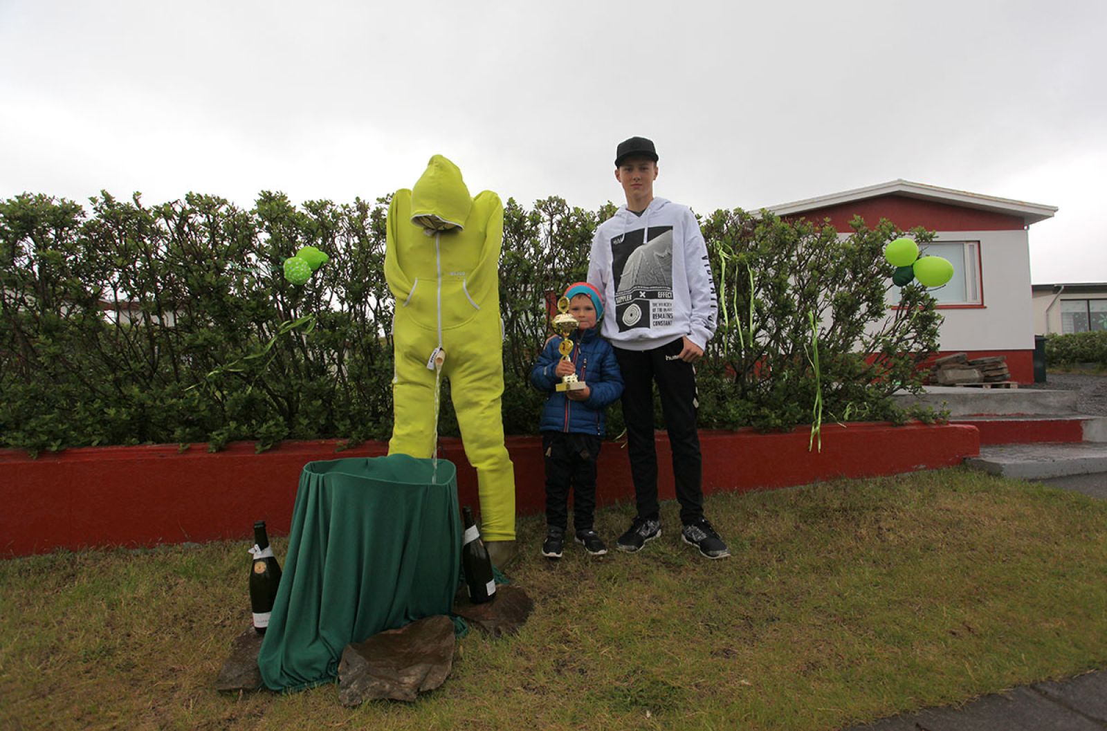 Heimilisfólkið að Lónabraut 27 fékk verðlaun fyrir flottustu fígúruna á Vopnaskaki um síðustu helgi. Kall að pissa ofan í fötu stóð við gangstéttarbrúnina og vakti mikla athygli.