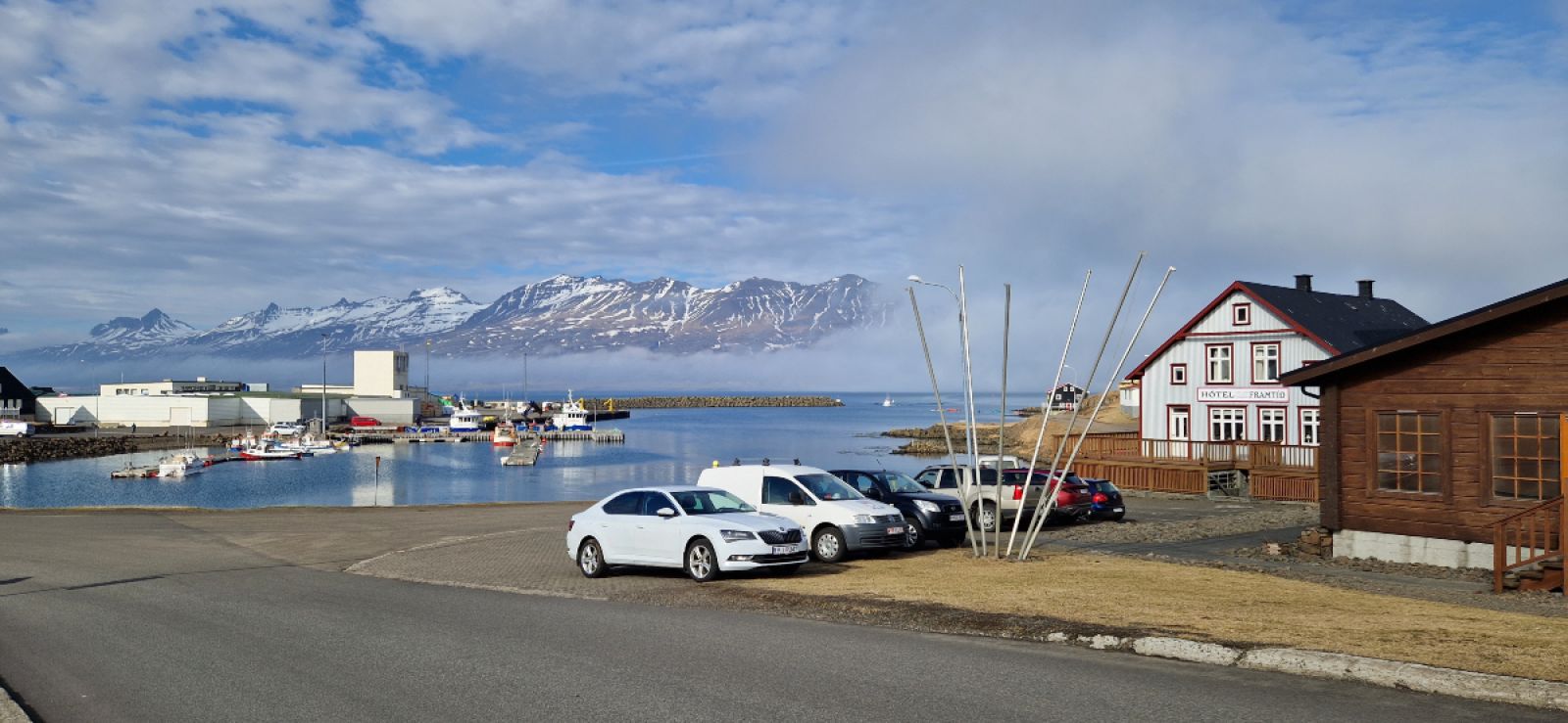 Mynd tekin eftir hádegið á Djúpavogi og sýnir og sannar að veðrið er svo sannarlega ekki að aftra fólki frá því að heimsækja og njóta Hammond-hátíðarinnar. Mynd Ólafur Björnsson