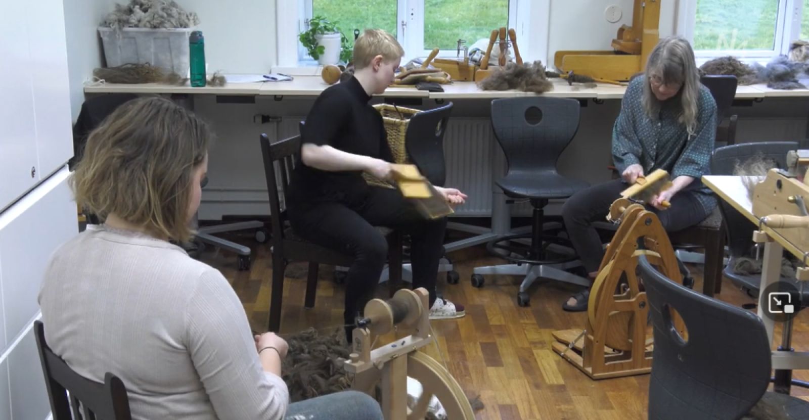 „Við erum búnar að læra mjög margt eins og skilja að þel og tog, höfum lært að kemba með gömlu aðferðinni og svo höfum við verið að spinna fyrsta bandið okkar á halasnældu,“ segir Linda Ólafsdóttir.