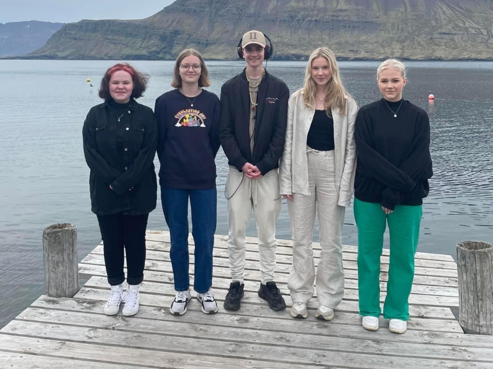Unga fólkið sem unnið hefur að listsköpun í allt sumar í Fjarðabyggð undir hatti Skapandi sumarstarfa. Þau sýna verk sín næstu dægrin. Mynd Fjarðabyggð