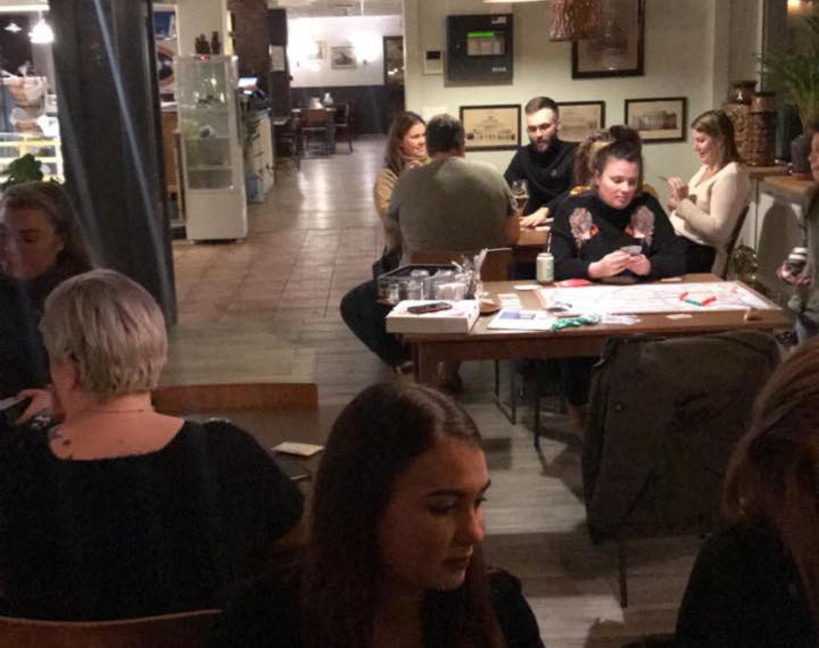 „Spilakvöldin hér eru alltaf haldin í Hildibrand en þeir voru svo ofboðslega almennilegir að taka við okkur og það er svo skemmtileg stemming hjá þeim. Svo hafa þeir líka stundum verið með tilboð á barnum og þegar við höfum komið hafa þeir alltaf boðið upp á bakkelsi sem hafa verið eftir.