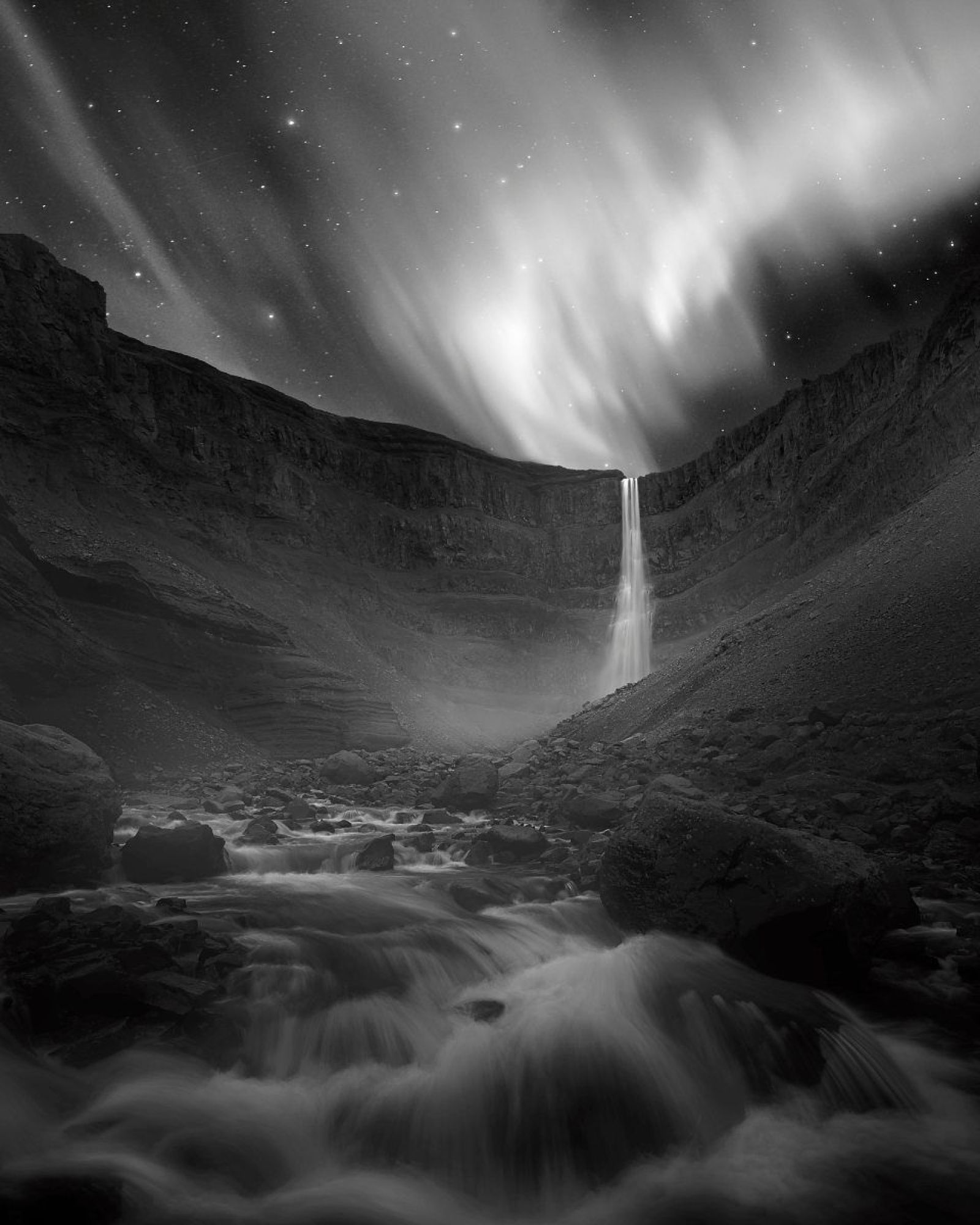 Það var Hollendingurinn Daniel Laan sem tók myndina sem var valin besta svarthvíta myndin í samkeppninni. Takan hefur verið tæknilega krefjandi því myndin virðist tekin að nóttu miðað við stjörnur og annað sem sjá má yfir fossinum. Laan getur flokkast í hóp Íslandsvina því hann stendur fyrir reglulegum ljósmyndaferðum hingað til lands þar sem sérstök áhersla er lögð á næturmyndatöku.