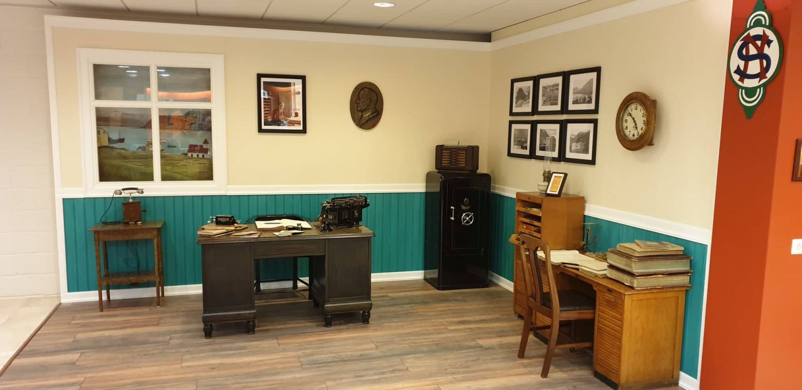 Svo verður sett upp sýning í suðausturhluta afgreiðslu Sparisjóðsins þar sem sjá má dæmigerða skrifstofu og skrifstofubúnað frá þeim árum þegar Sparisjóðurinn var að festa rætur. Sýningin hefur nú þegar verið opnuð. Unnur Sveinsdóttir hafði umsjón með uppsetningu sýningarinnar.