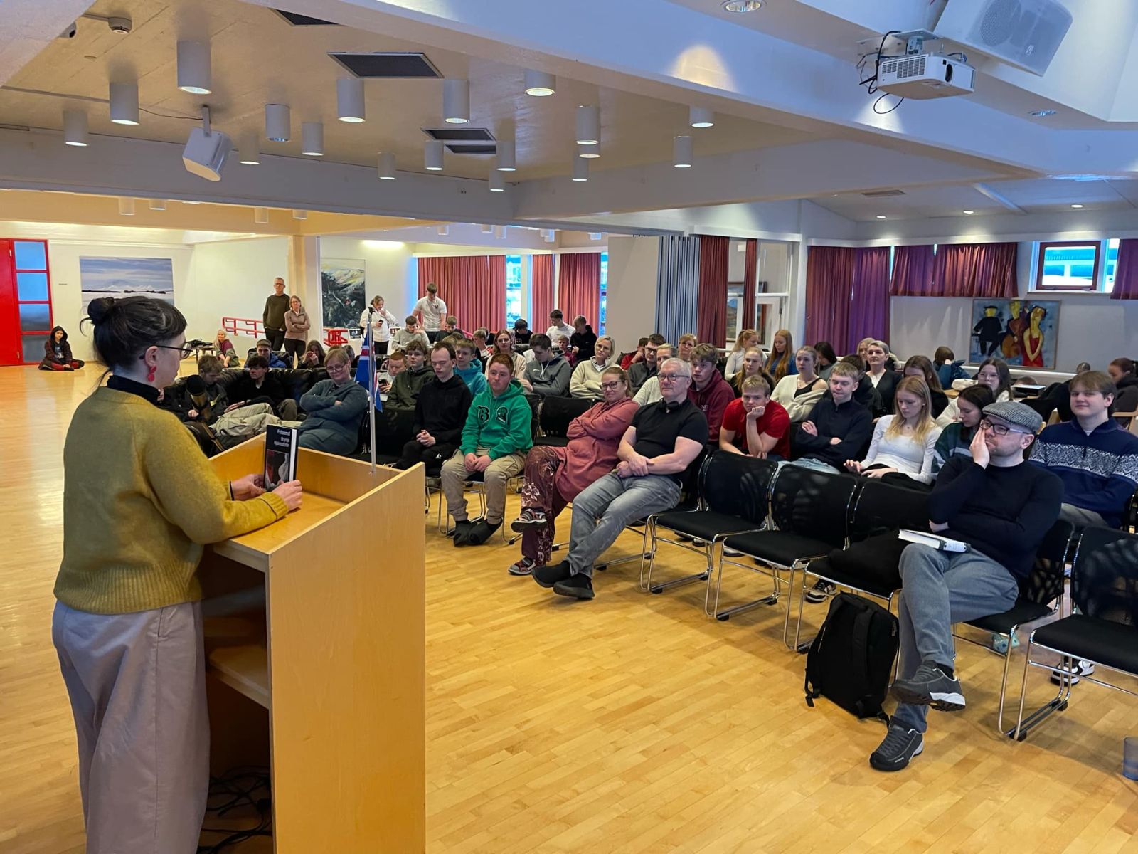 Brynja Hjálmsdóttir las í morgun upp fyrir nemendur Menntaskólans á Egilsstöðum. Mynd: Aðsend