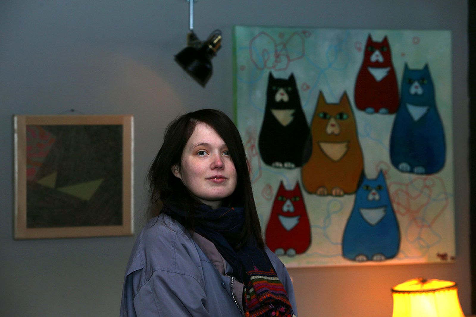Sýninguna í Tehúsinu kallar hún „Mynstur.“ „Ég geri mikið af mynstri þegar ég teikna. Ég er hér meðal annars með kisumyndir og kisurnar mynda mynstur í sumum myndunum. Ég er líka að horfa eftir mynstrum í mínum listamannsferli. Þetta eru verk frá árinu 2016 þar til núna,“ segir hún.