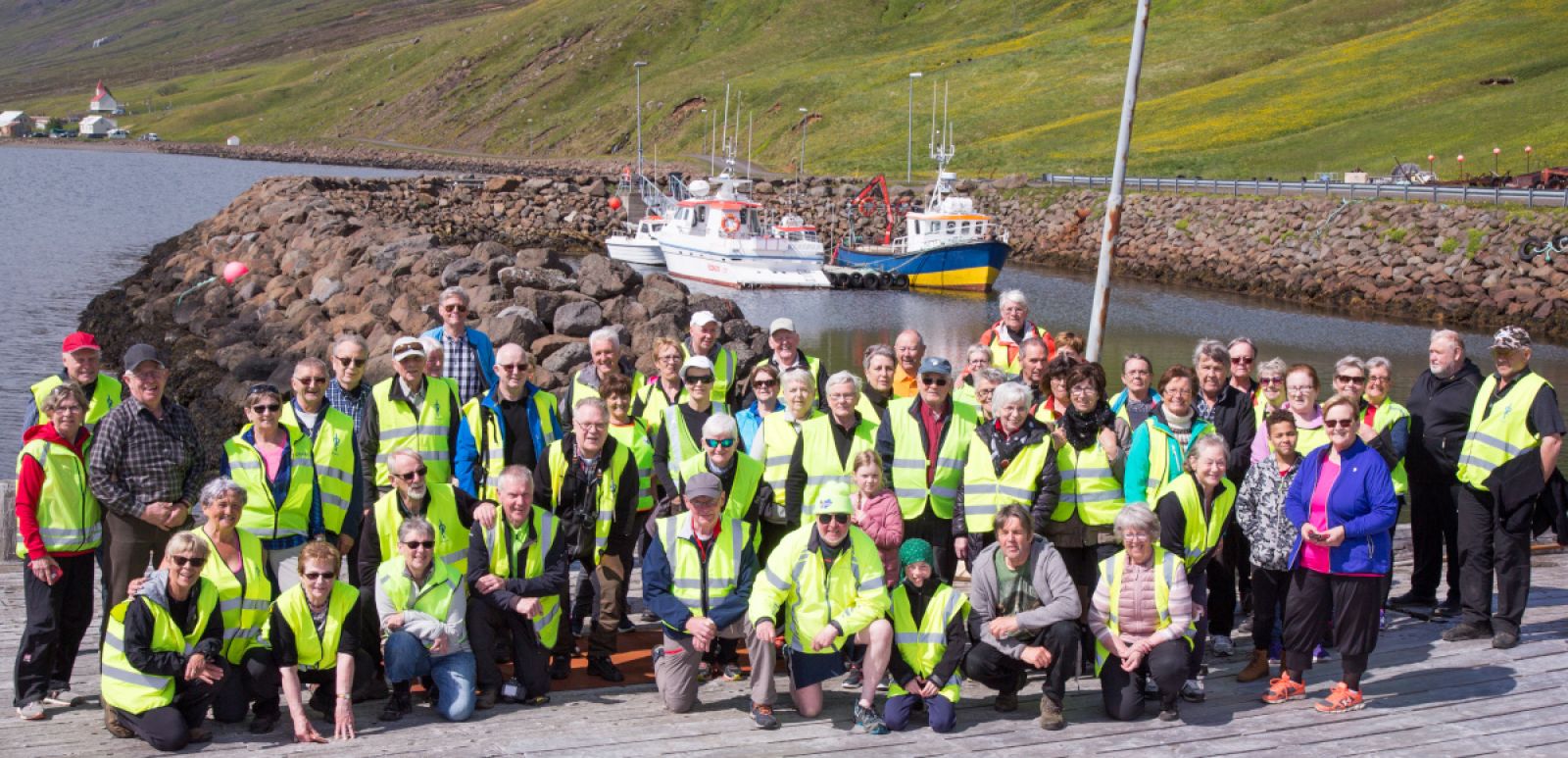 „Þetta var í einu orði sagt stórkostlega flottur dagur hjá okkur en það voru um 60 manns sem gengu í yndislegu veðri,“ segir Hlíf Herbjörnsdóttir, formaður Jaspis, félags eldri borgara á Stöðvarfirði, en hópurinn hefur gengið um helgar í maí og júní.