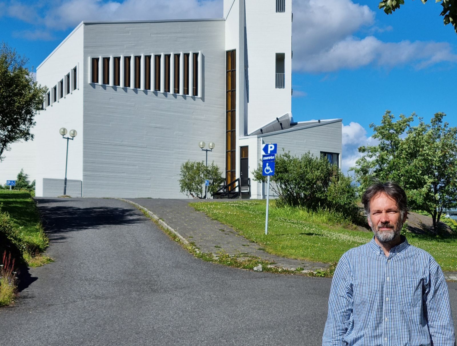 Nýi kórstjórinn og organistinn Sándor Kerekes fyrir utan Egilsstaðakirkju. Hann og fjölskylda hans eru að koma sér fyrir á svæðinu. Mynd Þorgeir Arason