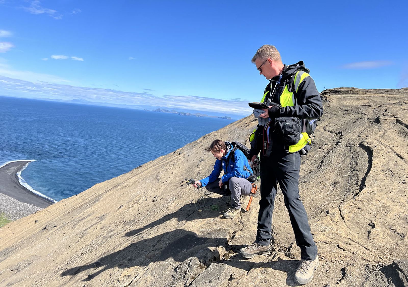 María Helga, til vinstri, og Kristján Jónasson, við rannsóknir í Surtsey. Mynd: Birgir V. Óskarsson
