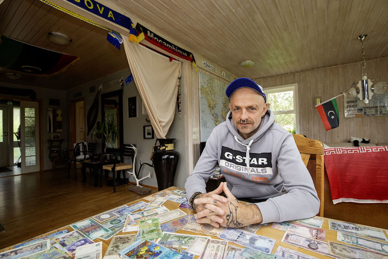 Undir glærum borðplötunum eru peningaseðlar frá ýmsum áttum, Páskaeyju, Kúbu og Bahrein svo dæmi séu tekin. „Ég hef gaman af þeim því á þeim er yfirleitt tákn frá hverju landi. Ég var alltaf til í að taka einhverja muni með mér til að muna eftir landinu. Núna finnst mér þetta drasl. Ég kem ekki nærri öllu fyrir.“