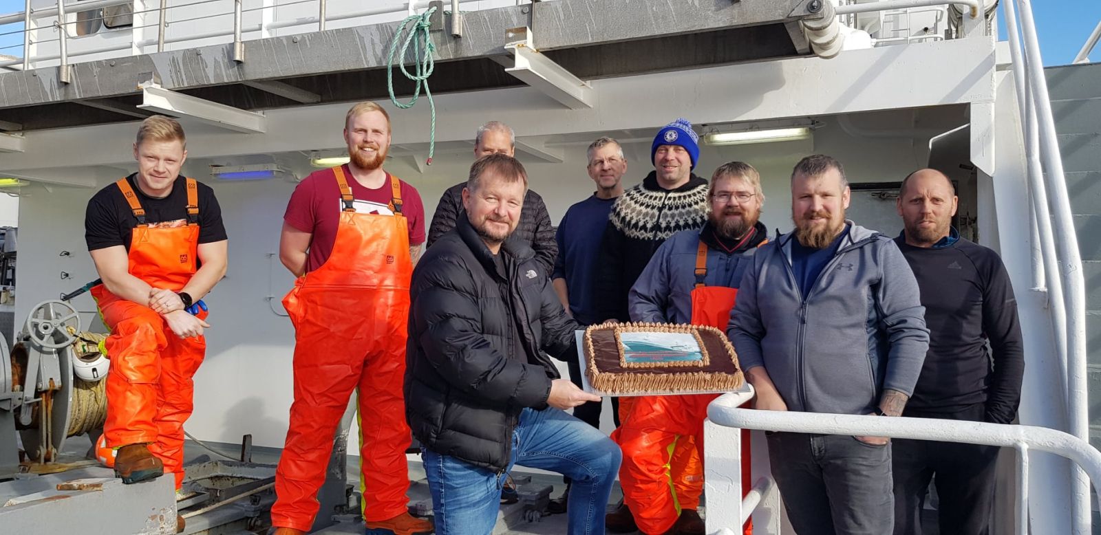 Áhöfn Hoffells er meðal þeirra sem pantað hefur mottumarssokkana. Mynd: Loðnuvinnslan/Krabbameinsfélag Austfjarða