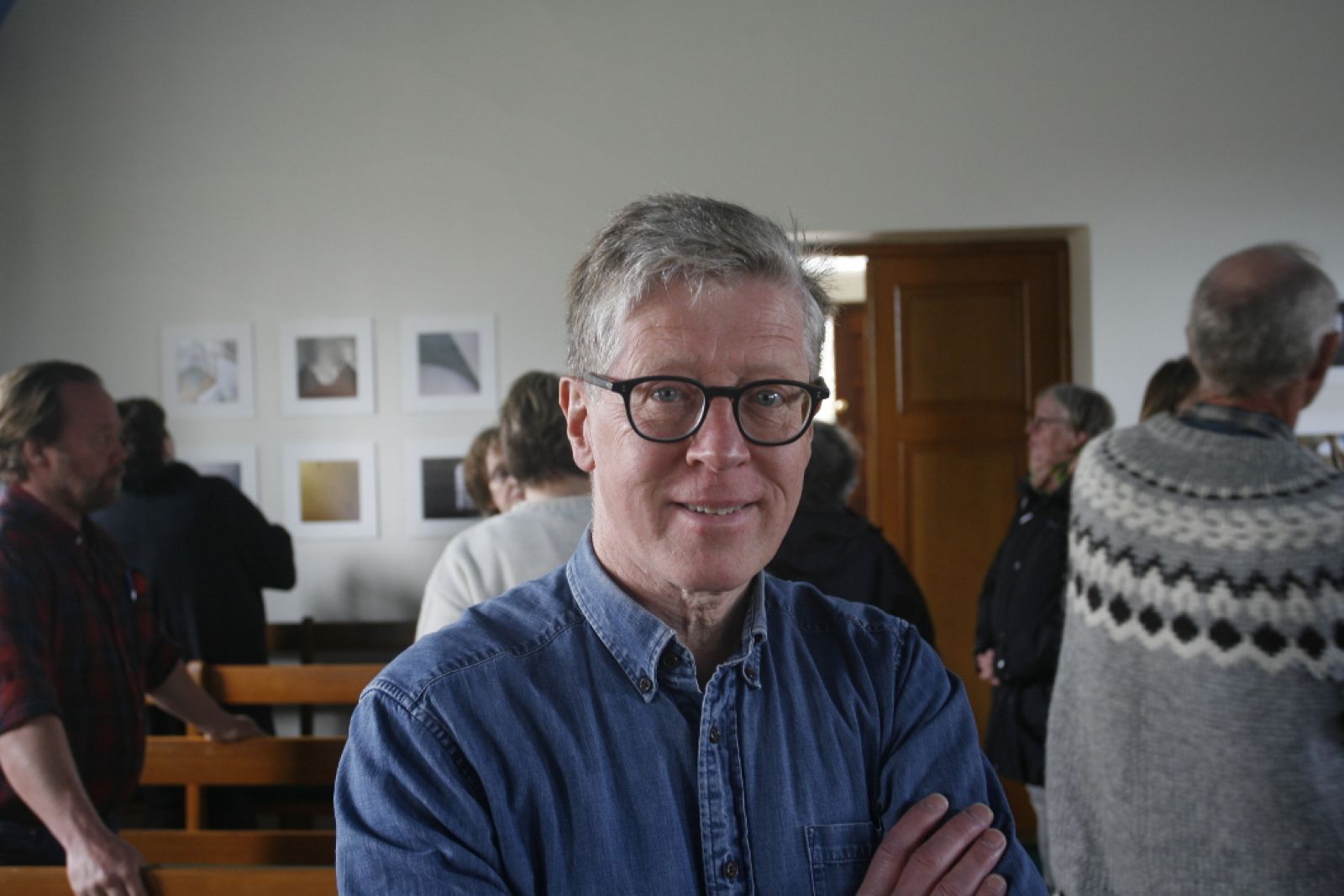 Sýning Jóns var formlega opnuð við guðsþjónustu í Vallaneskirkju síðastliðinn sunnudag. Myndirnar munu hanga uppi í kirkjunni fram eftir sumri og er gestum og gangandi boðið að kíkja við í kirkjunni og virða þær fyrir sér.