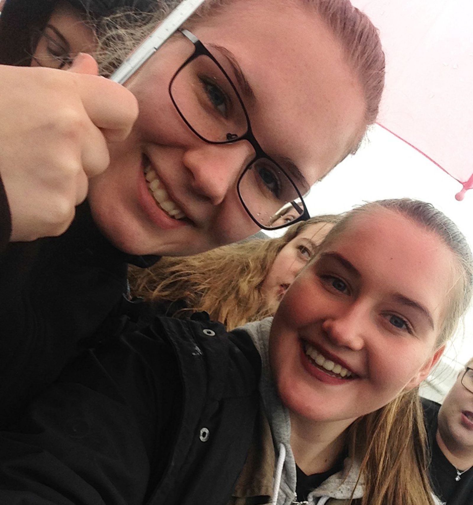 Móeiður segir að þær hafi ákveðið að mæta snemma til að freista þess að ná stæði framarlega við sviðið. „Þegar við mættum voru svona 25 manns á undan okkur þannig að við sáum að við yrðum framarlega en áttuðum okkur ekki á því að við næðum að komast í fremstu röð,“ segir Móeiður en þær stöllur komust alveg upp að öryggisgirðingunni við sviðið.