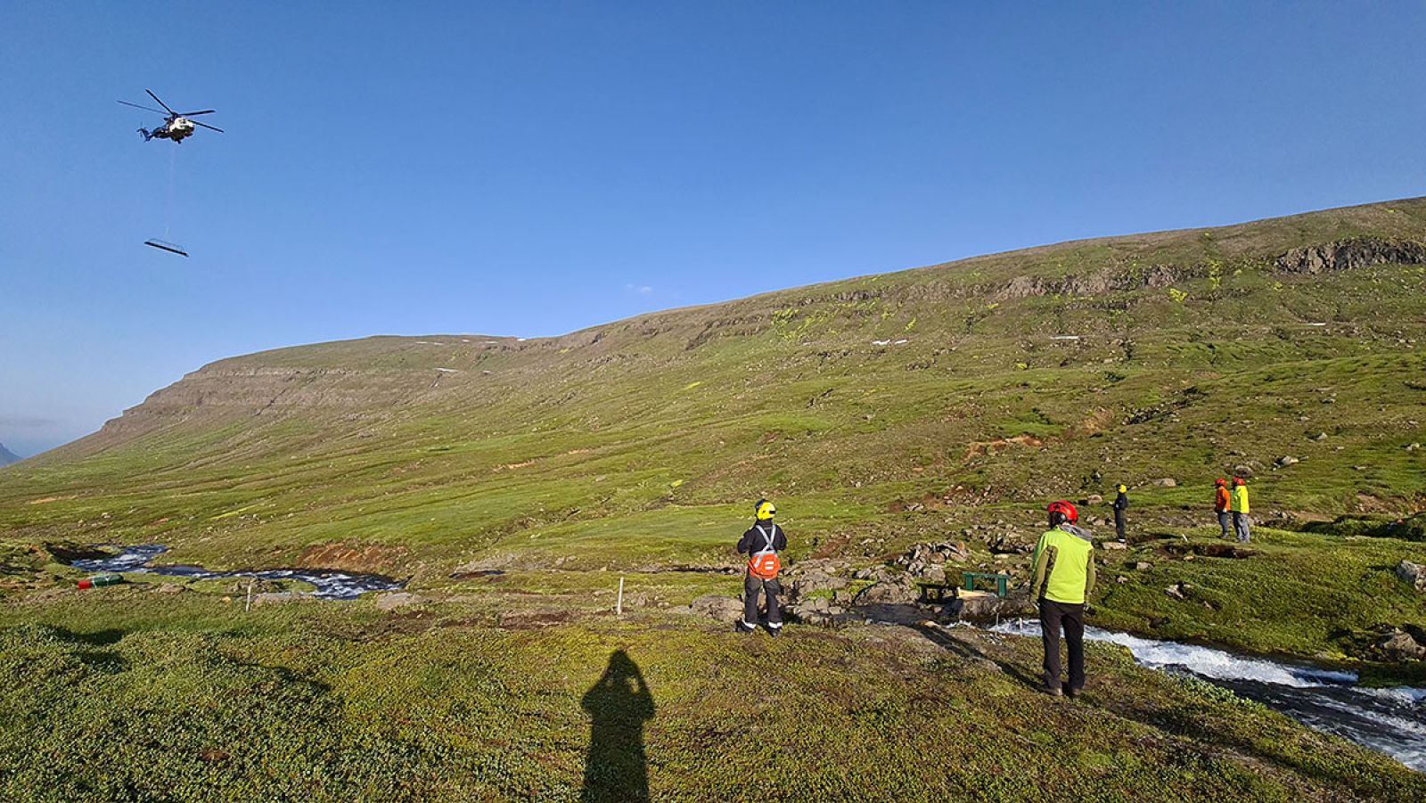 Þyrlusveit Landhelgisgæslunnar aðstoðaði nýverið félaga í Gönguklúbbi Seyðisfjarðar við að koma fyrir nýrri brú á Hjálmá. Hún eykur öryggi þeirra sem ganga milli Loðmundarfjarðar og Seyðisfjarðar.