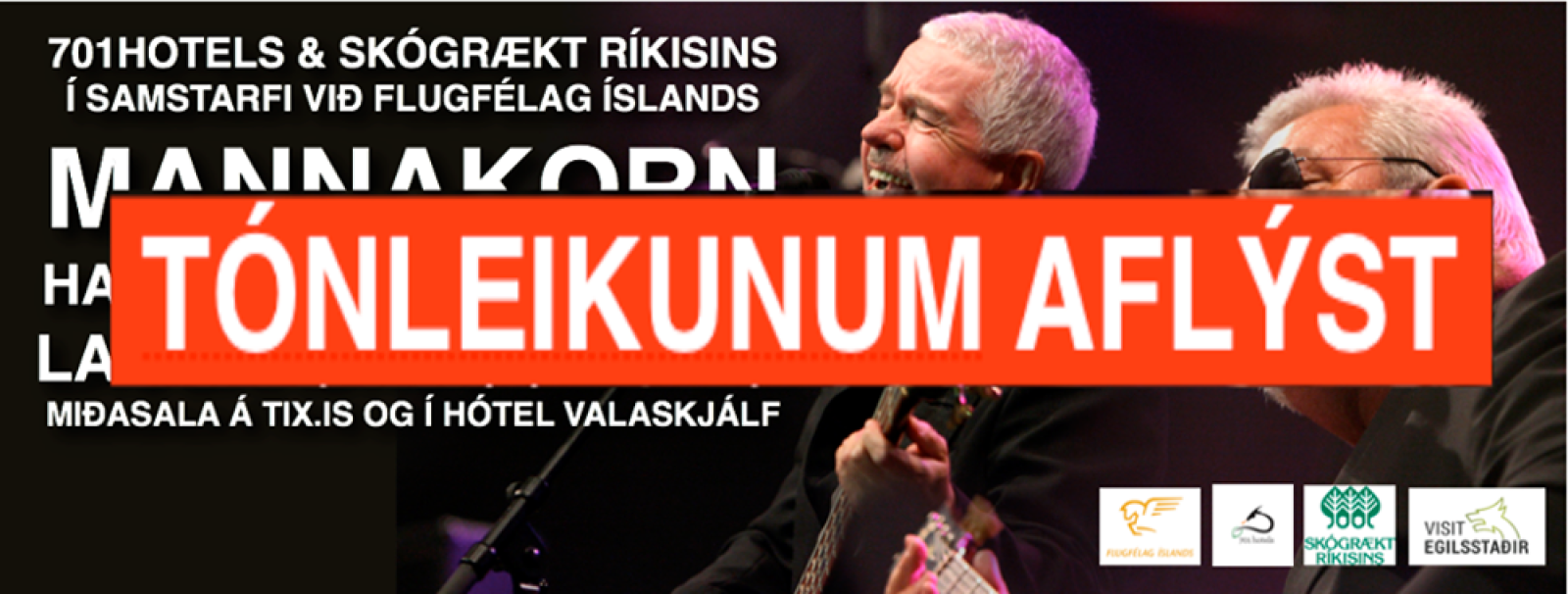 Áður auglýstum útitónleikum með Mannakornum sem fram áttu að fara í Hallormsstaðaskógi á laugardagskvöldið á Skógardeginum mikla hefur verið aðlýst vegna veikinda.