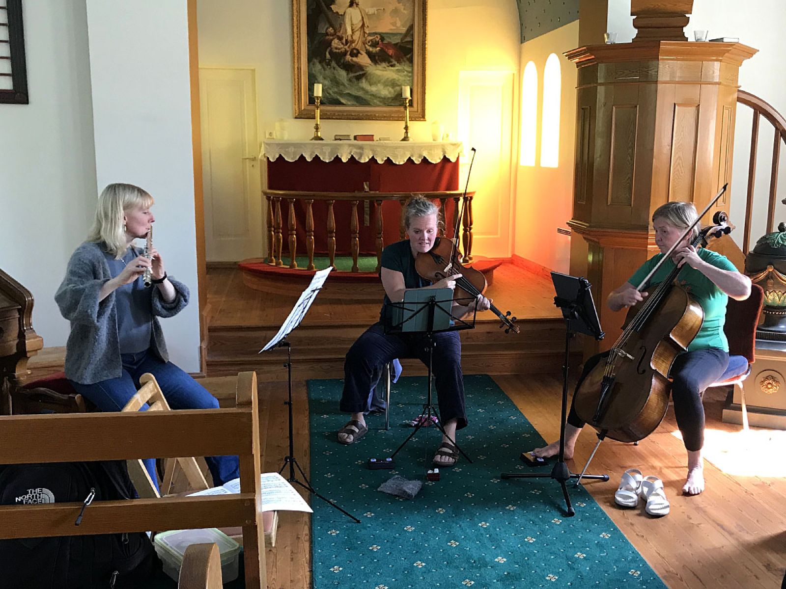 Kammerhópurinn Öræfi á æfingu í Vallaneskirkju í gærkvöldi. Mynd: Hlín Behrens