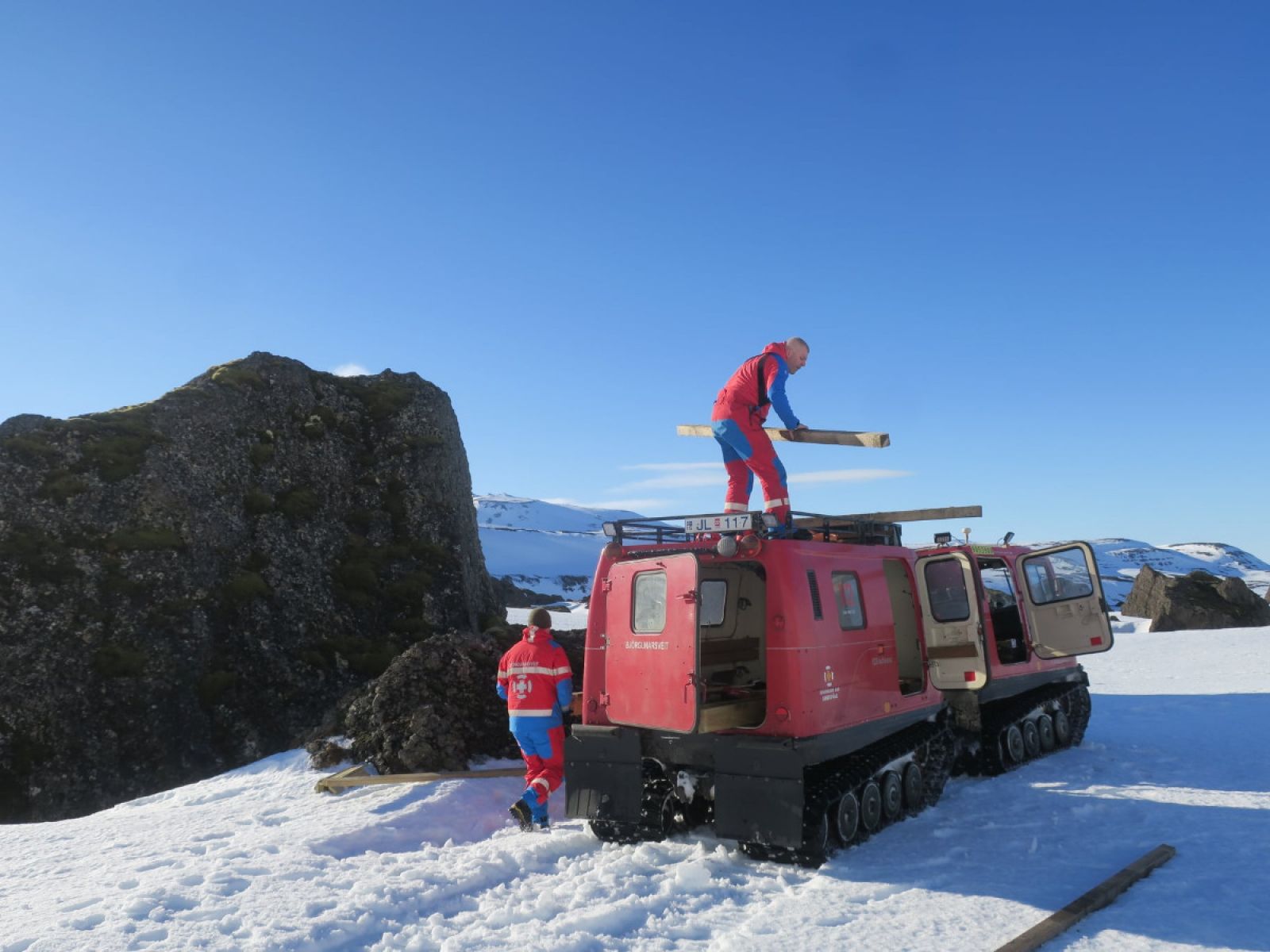 Reglulegt viðhald og umhirða er stór þáttur í að halda kostnaði niðri en fasteignum og búnaði í standi og þó ferðafélagsmenn hafi sinnt því í allan vetur fór undirbúningur á fullt fyrr í þessum mánuði. Þá fékk FFF björgunsveitina Hérað sér til aðstoðar við að koma fyrir einum sex göngubrúm á Stórurðarsvæðið og jafnframt að koma fyrir tröppum yfir girðingar á því svæði.