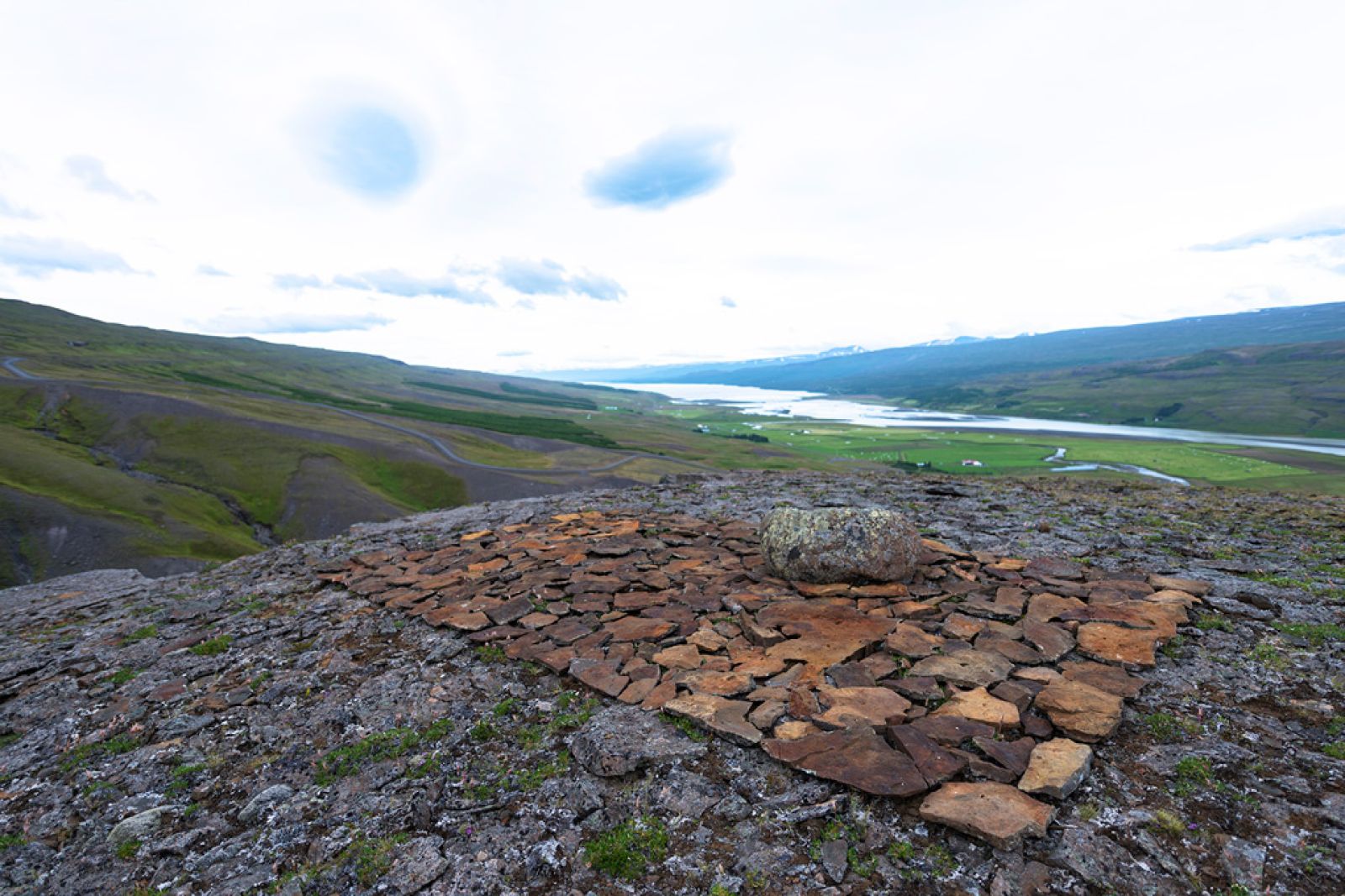 „Hann dvaldi hjá okkur í fyrrasumar og vann þá að umhverfislistaverkum vítt og breitt. Hann náði að gera um 200 verk og mörg þeirra inni í Vatnajökulsþjóðgarði, inni við Snæfell en fór líka víðar, til dæmis norður að Kröflu,“ segir Skúli Björn Gunnarsson, forstöðumaður Gunnarsstofnunar.