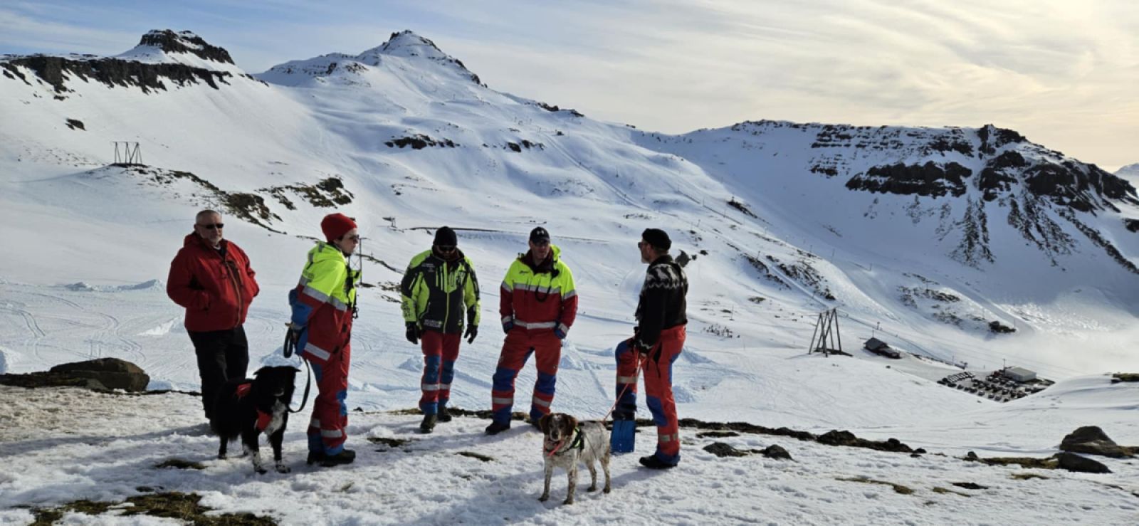 Einir þrettán hundar og eigendur þeirra eyddu fjórum dögum á skíðasvæðinu í Oddsskarði fyrir skömmu en það var liður í æfingum og prófum fyrir leitarhunda Slysavarnafélagsins Landsbjargar. Hópurinn naut góðrar aðstoðar björgunarsveitarfólks af Austfjörðum.