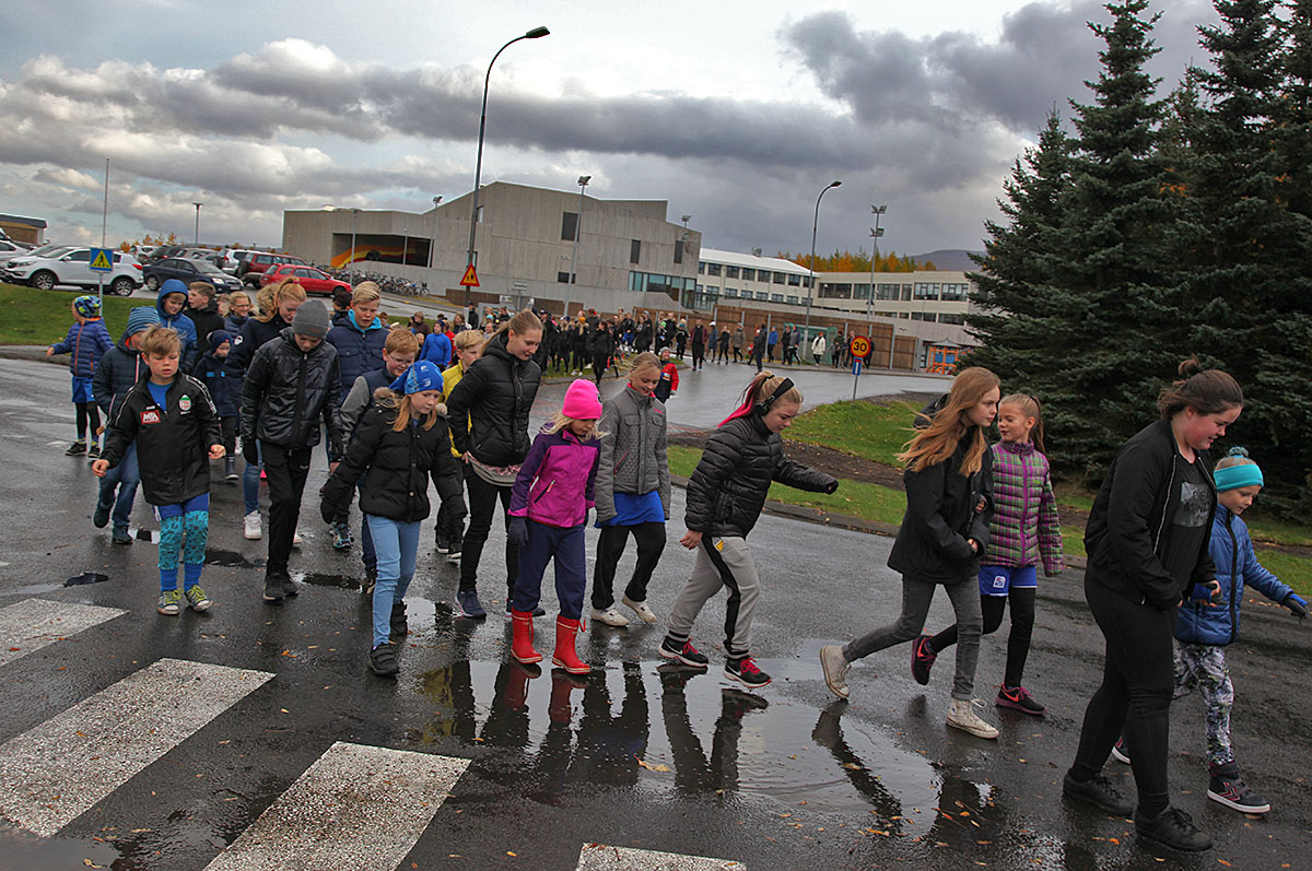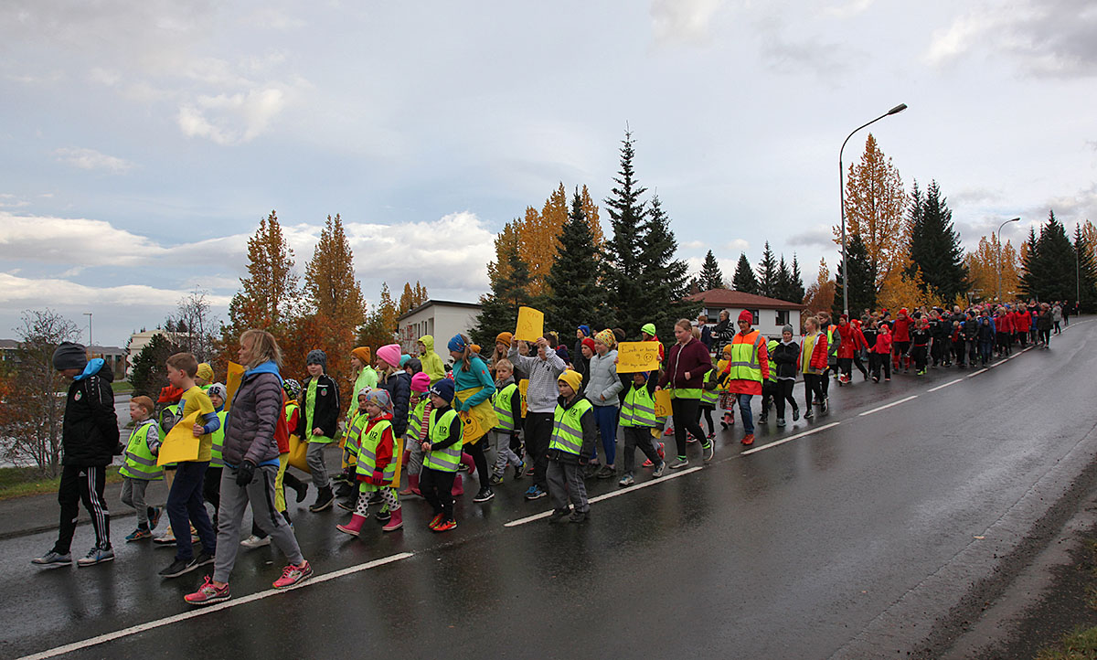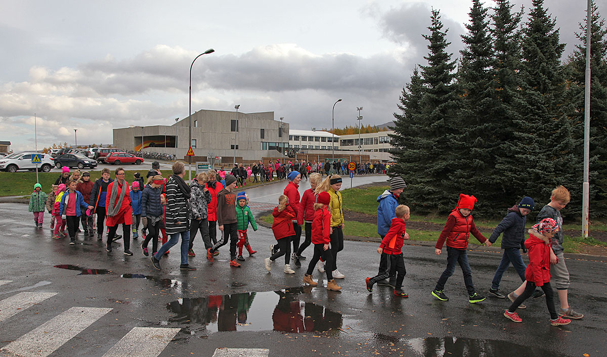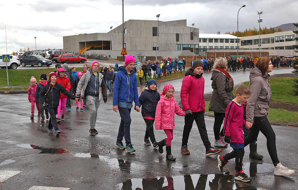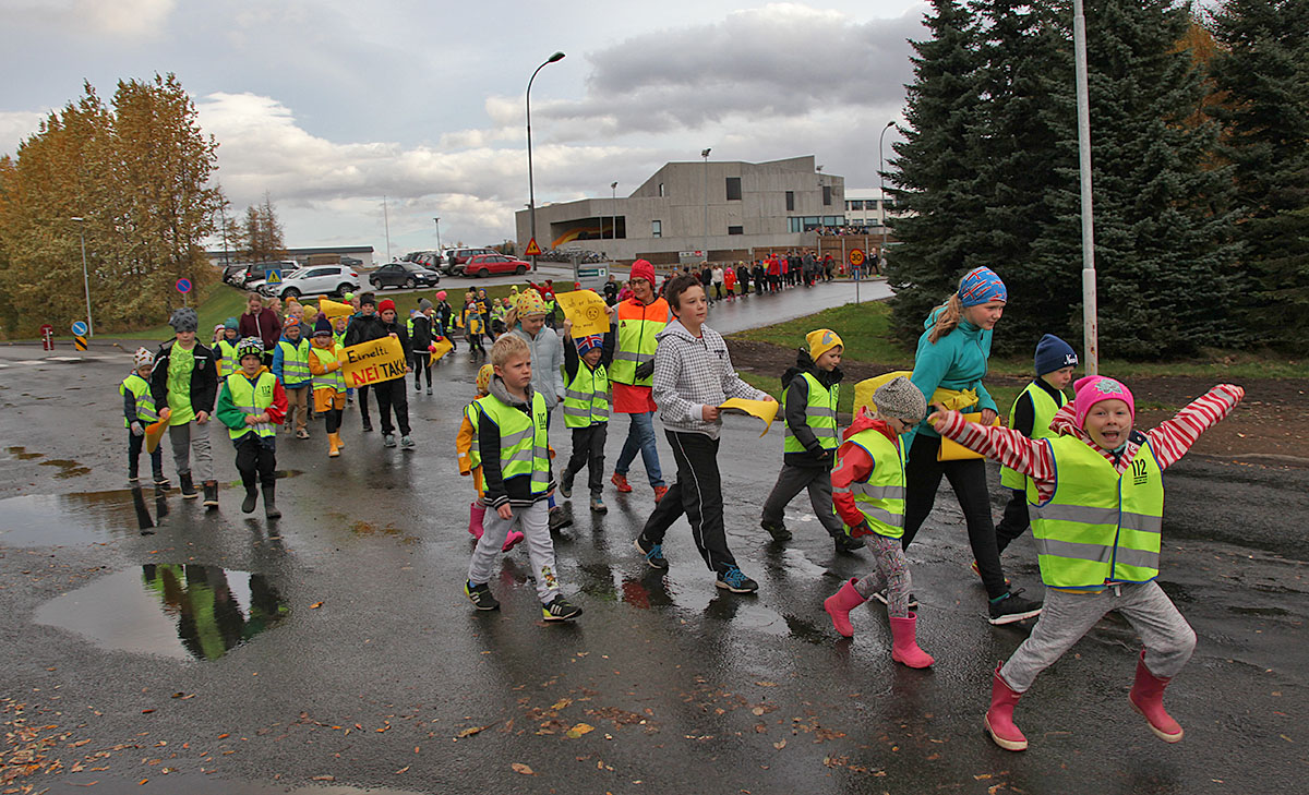 Skóladagurinn hófst á göngu um Egilsstaði en þegar komið var aftur í skólann tók við eineltisfræðsla í hverjum bekk fyrir sig. Vinabekkirnir hittast síðan aftur í hádeginu og borða saman.