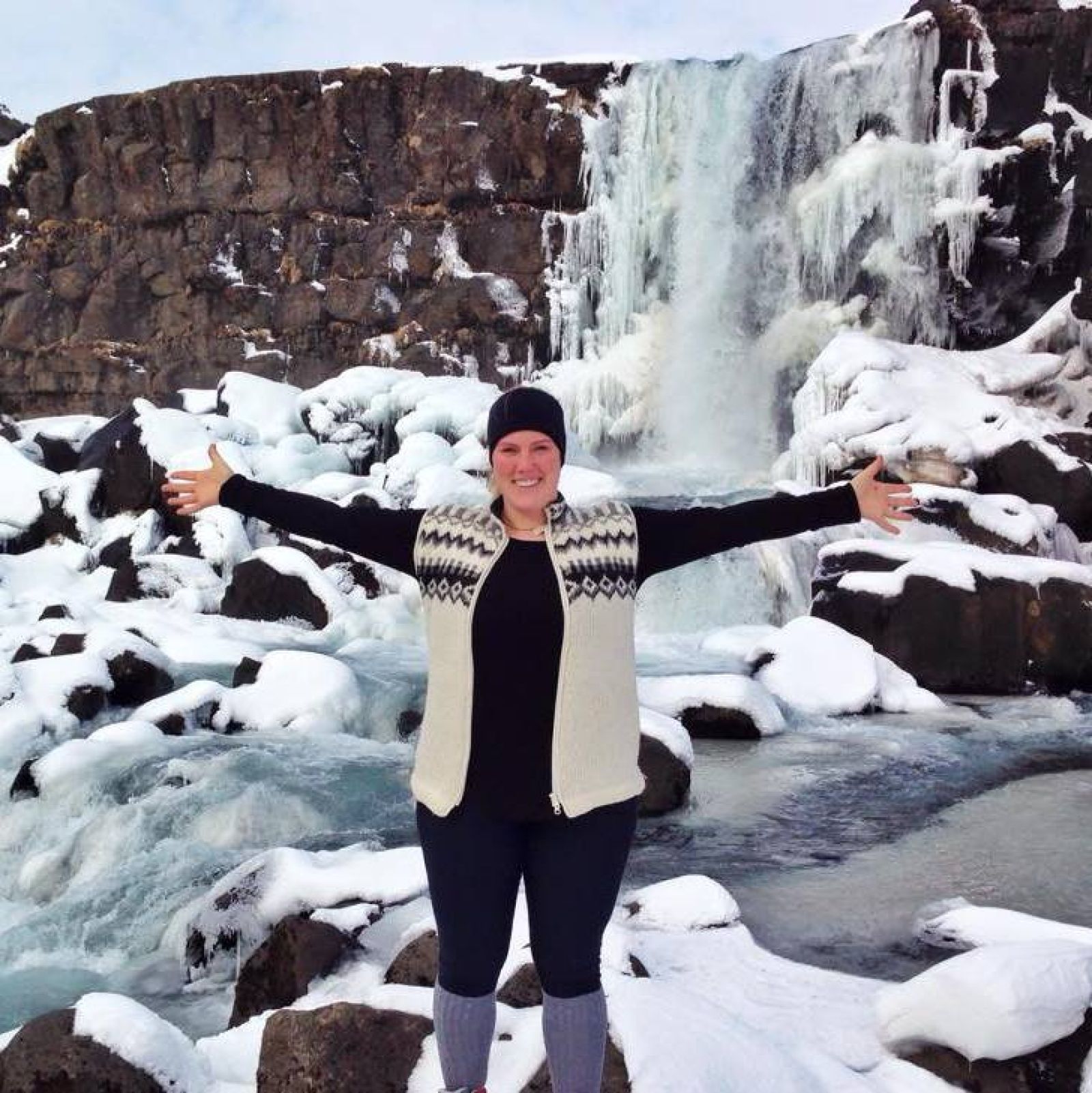 Karen við Öxarárfoss á Þingvöllum. Myndin er aðsend.